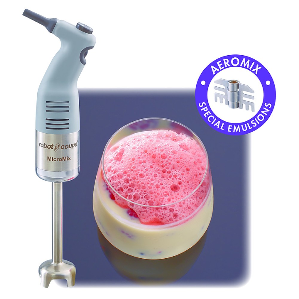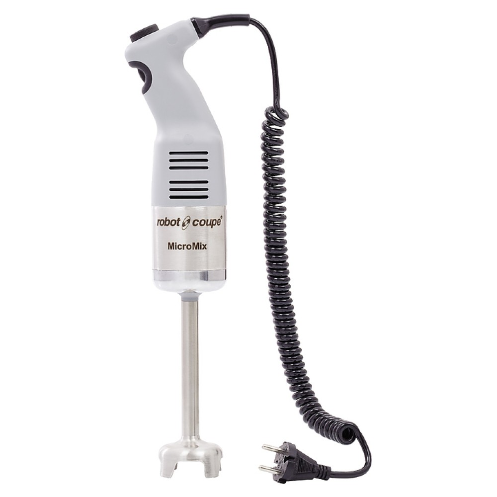 Ручной миксер Robot Coupe MicroMix предназначен для взбивания эмульсий, приготовления супов-пюре, майонеза, соусов, муссов, картофельного и овощного пюре, взбивания жидкого теста для блинчиков на предприятиях общественного питания и торговли. Миксер легко разбирается, что позволяет поддерживать его в чистоте. Спиральный шнур растягивается для удобства в обращении.