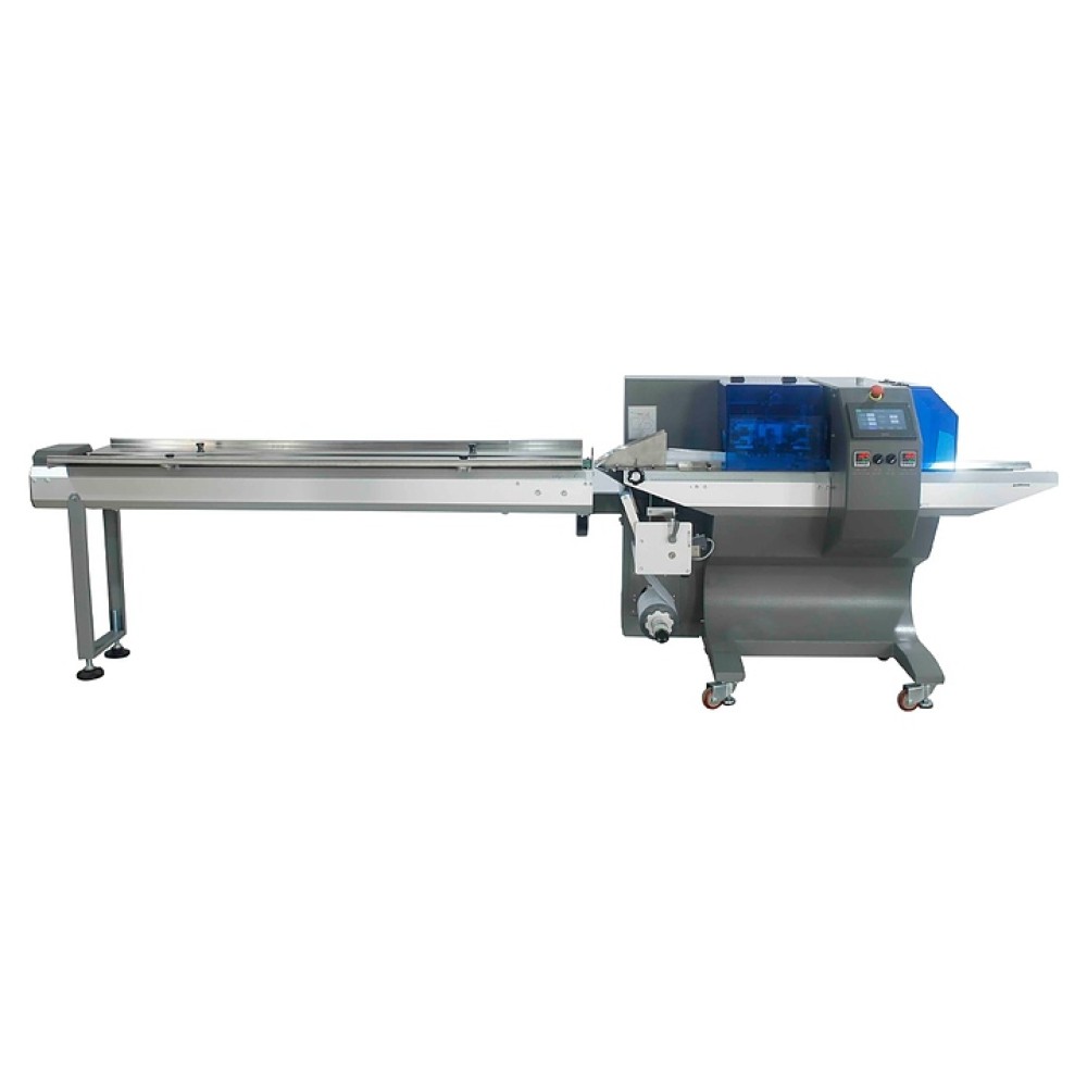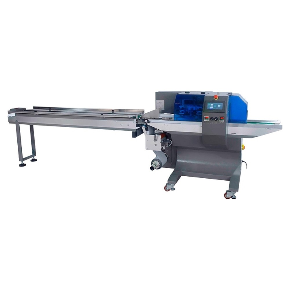 Горизонтальный упаковочный автомат МАГИКОН 450AGXS DAN используется в цехах и на складах предприятий пищевой, косметической, фармацевтической и других направлений промышленности для герметичной упаковки печенья, шоколадных батончиков, мыла, одноразовой посуды, промышленных деталей и других штучных изделий и групп продуктов в пакеты типа «подушка» (flow pack). Модель оснащена рулонодержателем для пленки и электромеханической панелью управления. Корпус выполнен из окрашенного металла.