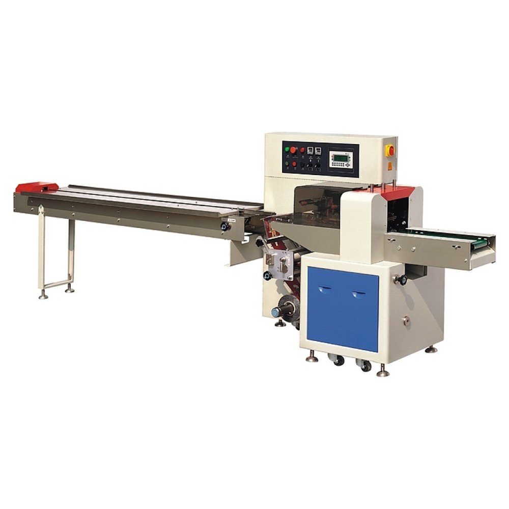 Горизонтальная упаковочная машина Hualian DXDZ-350X используется в цехах и на складах предприятий пищевой, косметической и других направлений промышленности для герметичной упаковки печенья, шоколадных батончиков, мыла, одноразовой посуды, промышленных деталей и других штучных изделий и групп продуктов в лотках различной формы в пакеты типа «подушка» (flow-pack). Модель оснащена рулонодержателем для пленки и электромеханической панелью управления. Корпус выполнен из окрашенного металла.