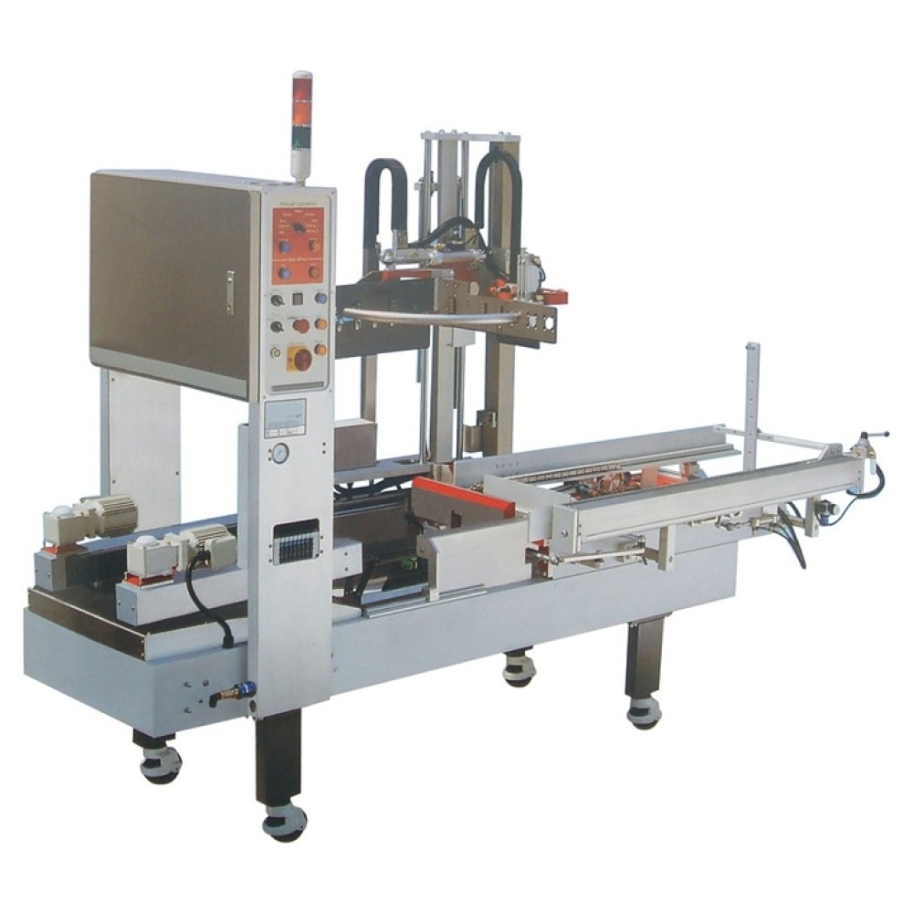 Сборщик коробов Hualian CXJ-6040A используется на предприятиях различных отраслей для автоматического формирования упаковочных картонных коробов из заготовок. Принцип работы: предварительно загруженная в магазин картонная вырубка захватывается специальным механизмом, затем происходит формирование прямоугольника корпуса, складывание нижних створок и герметизация дна клейкой лентой. Модель оснащена электромеханической панелью управления.
