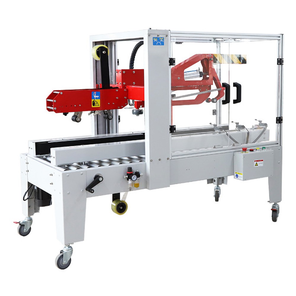 Полуавтоматический заклейщик Hualian FXJ-5050ZX используется на предприятиях различных отраслей для герметизации упаковочных картонных коробов клейкой лентой. Модель оснащена рабочим столом с рулонодержателем для клейкой ленты и панелью управления на боковой стенке.