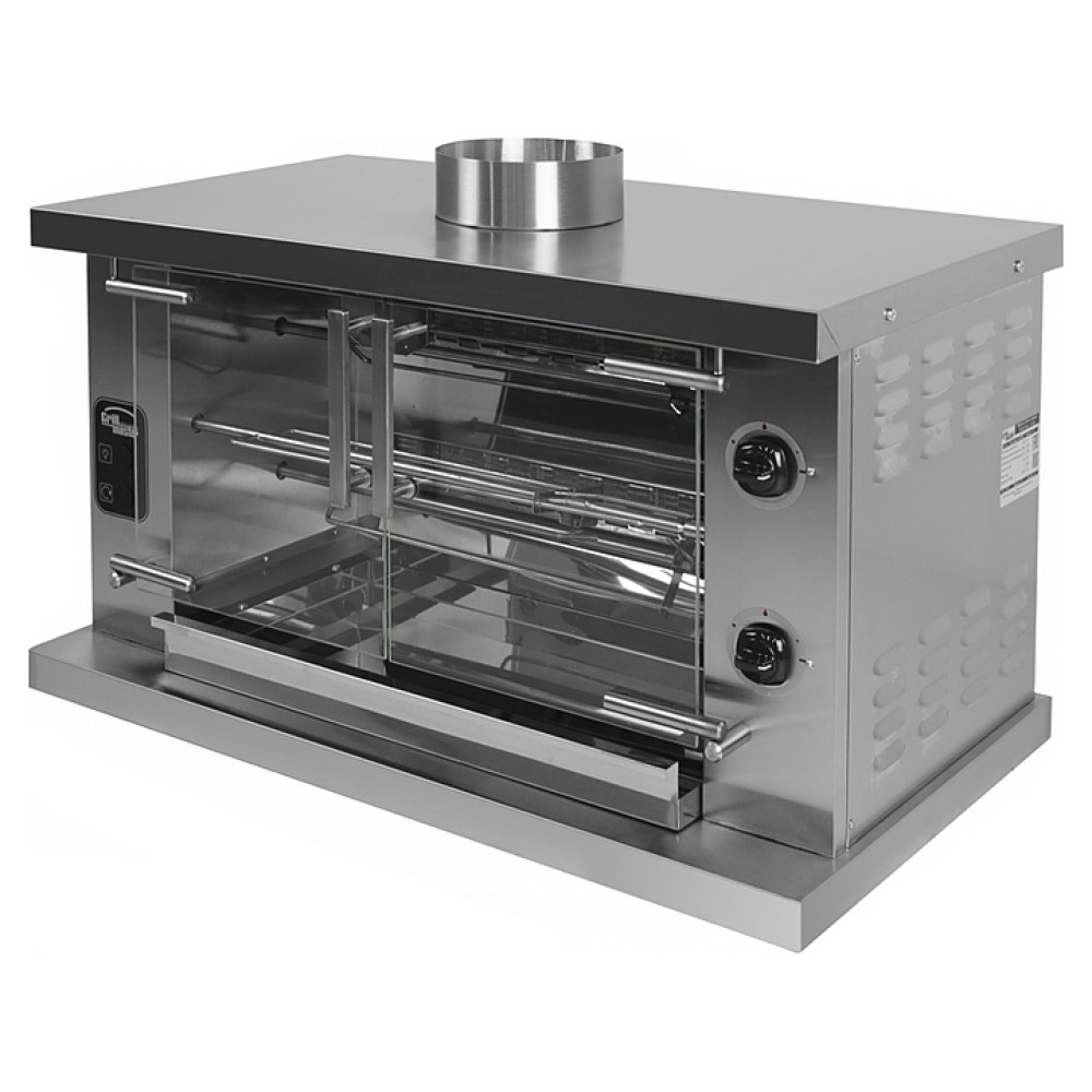 Гриль для кур Grill Master Ф2У2Г используется на предприятиях общественного питания и торговли для приготовления тушек кур, куриных окорочков, грудок и других продуктов. Модель оснащена подсветкой в камере, газ-контролем и 2 съемными автономными инфракрасными горелками. Корпус выполнен из нержавеющей стали, двери - из термостойкого стекла.
