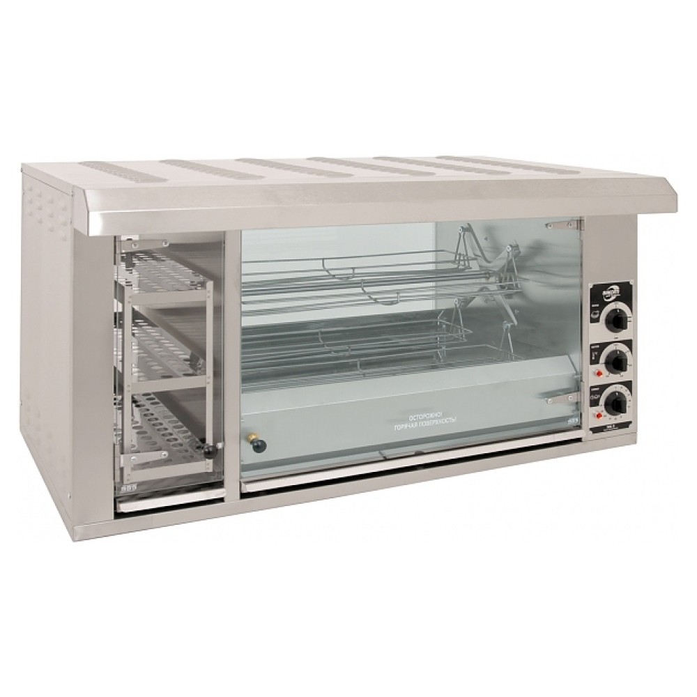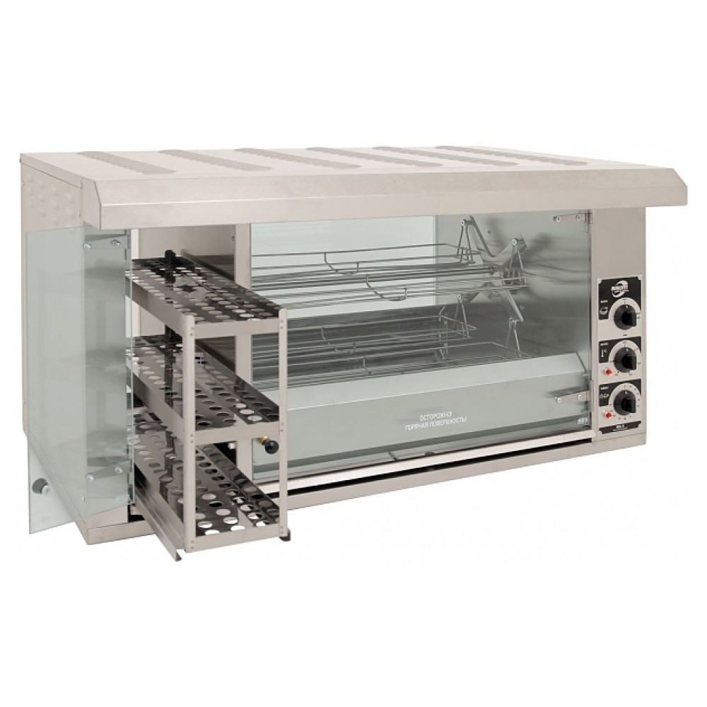 В комплект поставки входит съемный вертел, 4 люльки-корзины, поддон, кассета витрины и поддон витрины