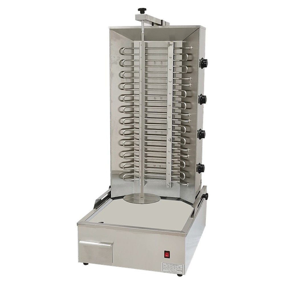 Гриль Kocateq GH 8DKE предназначен для обжарки большого количества различных видов мяса и птицы при приготовлении начинки для шаурмы, донера и других блюд на предприятиях общественного питания и торговли. Размещение на вертикальном вертеле обеспечивает равномерное приготовление. Модель оснащена 4 зонами нагрева с индивидуальной регулировкой, электроприводом вращения спицы и съемным лотком для сбора жира. Корпус выполнен из нержавеющей стали AISI 201, которая отличается прочностью и долговечностью.