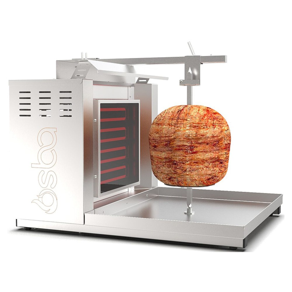 Электрический гриль Osba SH1-C предназначен для обжарки большого количества различных видов мяса и птицы при приготовлении начинки для шаурмы, донера и других блюд на предприятиях общественного питания и торговли. Размещение на вертикальном вертеле и ручное управление вращением обеспечивают равномерное приготовление. Модель оснащена защитным козырьком и 1 зоной нагрева с плавной регулировкой мощности. Покрытие на нагревательных элементах гарантирует легкую очистку. Перемещение вертела вперед и назад позволяет регулировать расстояние между мясом и нагревом при разном количестве заготовки. Корпус выполнен из пищевой нержавеющей стали, которая отличается прочностью и долговечностью, защита нагревателей - из жаростойкой стеклокерамики.