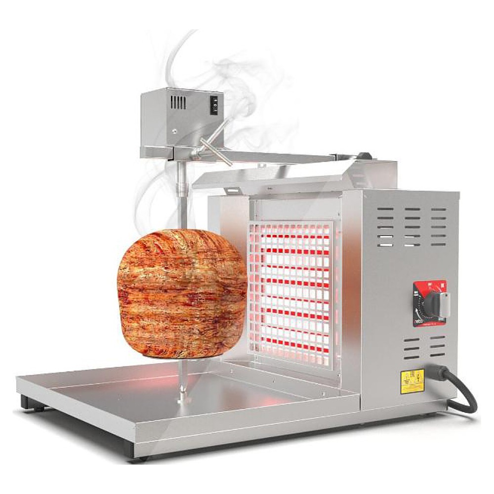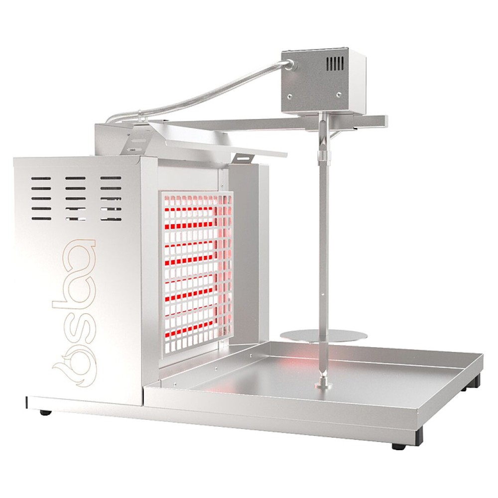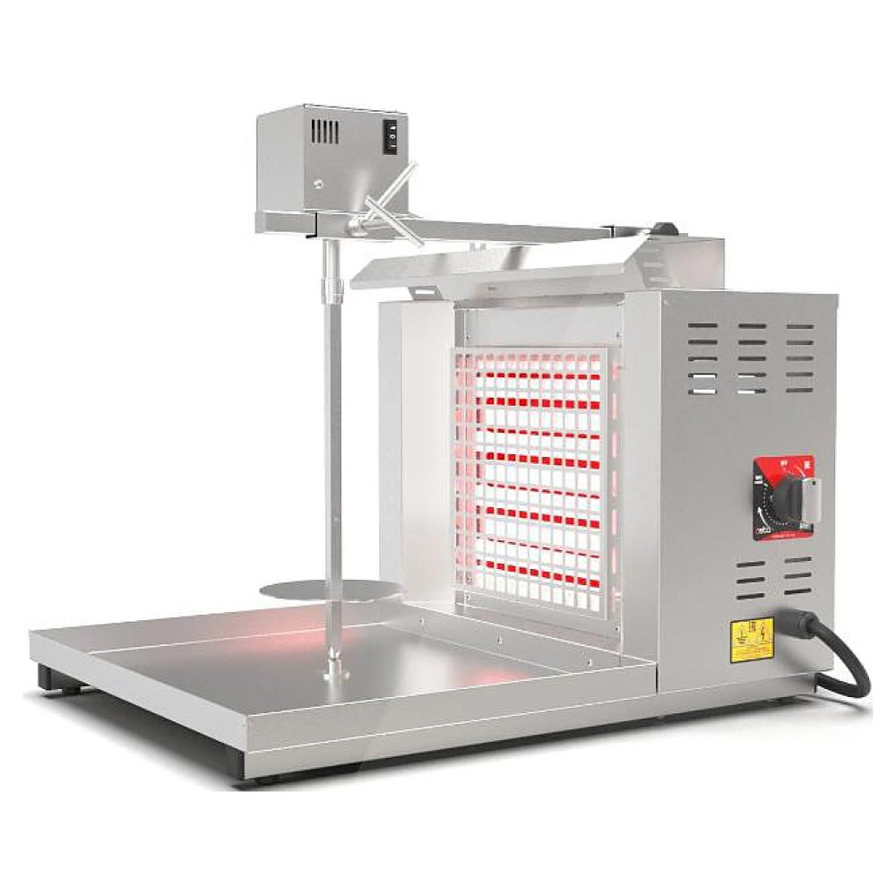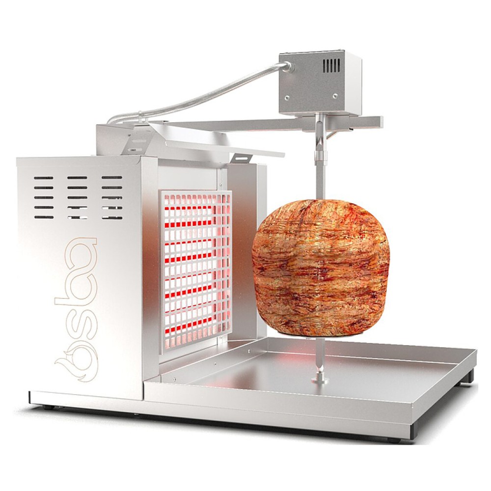 Электрический гриль Osba SH1-LE предназначен для обжарки большого количества различных видов мяса и птицы при приготовлении начинки для шаурмы, донера и других блюд на предприятиях общественного питания и торговли. Размещение на вертикальном вертеле и электрическое управление вращением обеспечивают равномерное приготовление. Модель оснащена 1 зоной нагрева с плавной регулировкой мощности. Перемещение вертела вперед и назад позволяет регулировать расстояние между мясом и нагревом при разном количестве заготовки. Корпус и решетка нагревателей выполнены из пищевой нержавеющей стали, которая отличается прочностью и долговечностью.