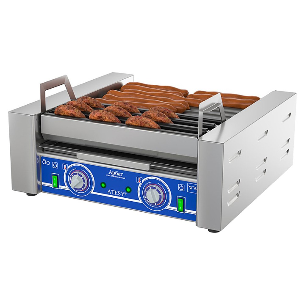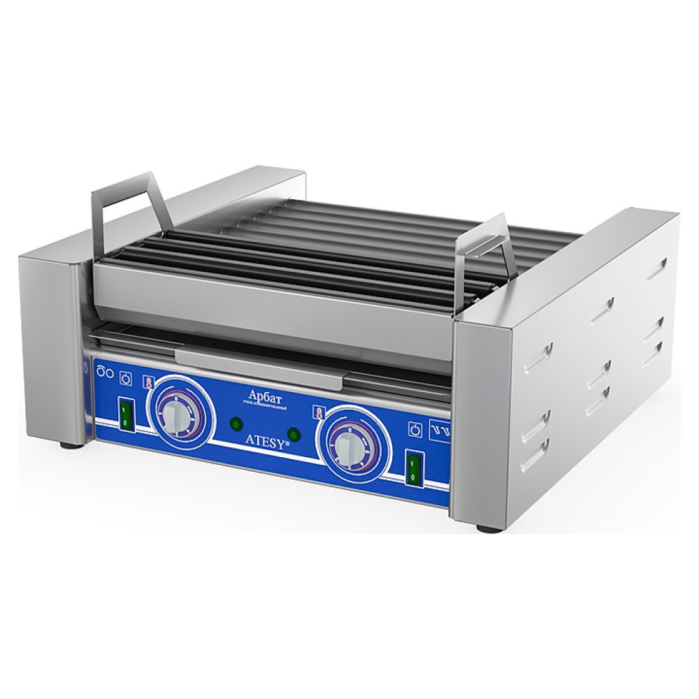Комбинированный гриль ATESY Арбат КГ-7.3-440-01 используется на предприятиях общественного питания и торговли для обжаривания сосисок, сарделек, мясных и рыбных батончиков цилиндрической формы, полуфабрикатов котлет и других продуктов питания. Модель оснащена ступенчатой системой регулировки температуры нагрева роликов и кассет. Все корпусные элементы, включая ролики, выполнены из пищевой нержавеющей стали, секции для котлет имеют антипригарное покрытие.