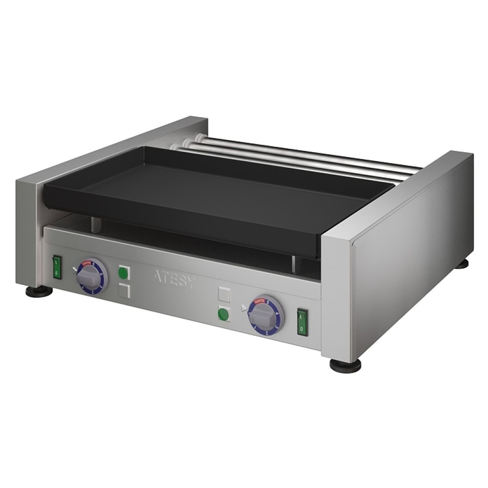 Комбинированный гриль ATESY Комбат ГКП-5Р.6Т-1П-450-02 используется на предприятиях общественного питания и торговли для приготовления различных типов продуктов: мяса, рыбы, овощей и т.д. Модель оснащена 1 жарочной поверхностью, 5 роликами и 6 ТЭНами. Корпус и ролики выполнены из пищевой нержавеющей стали, жарочная поверхность - из алюминиевого сплава с антипригарным покрытием.