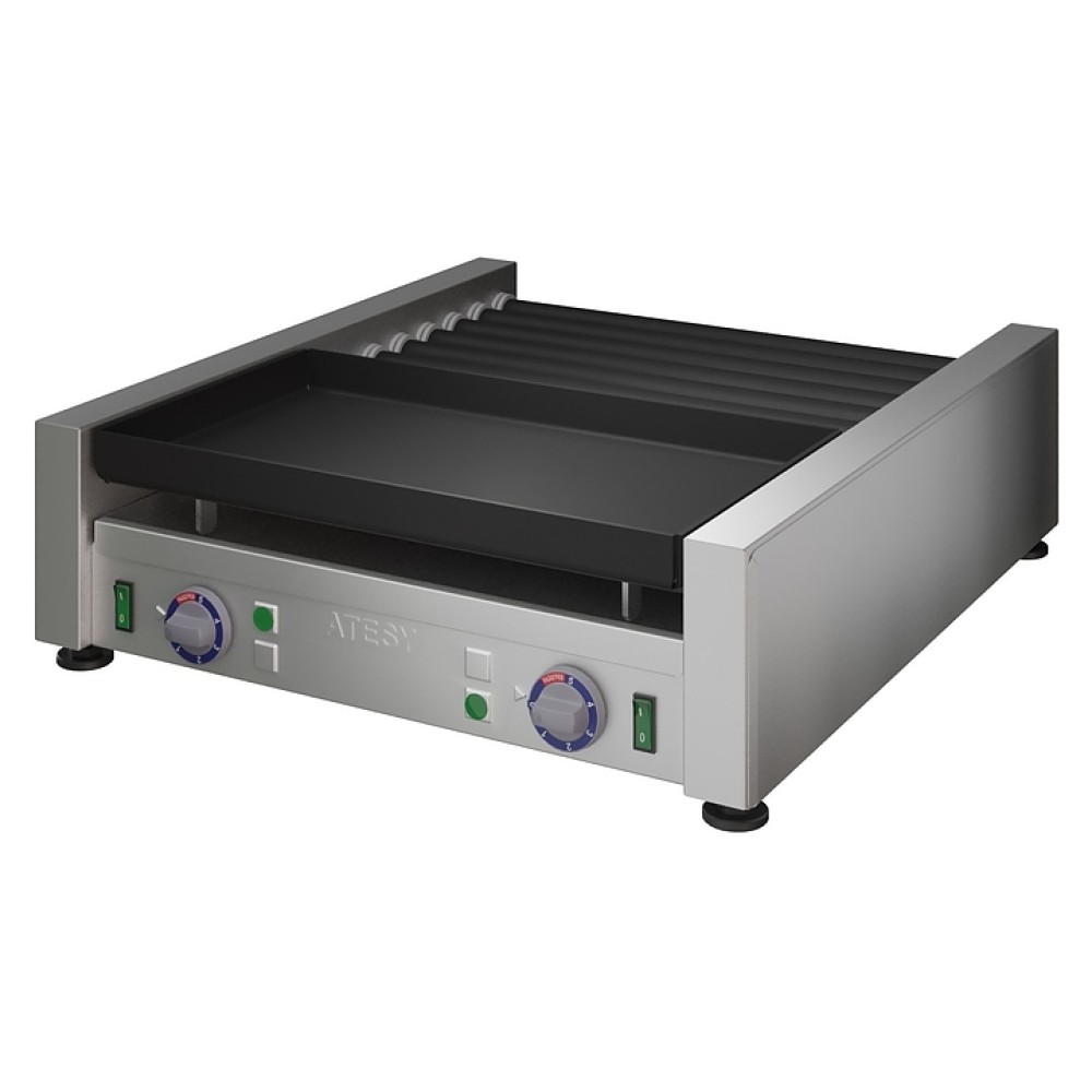 Комбинированный гриль ATESY Комбат ГКП-8Р.6Т-1П-450-02-A используется на предприятиях общественного питания и торговли для приготовления различных типов продуктов: мяса, рыбы, овощей и т.д. Модель оснащена 1 жарочной поверхностью, 8 роликами и 6 ТЭНами. Корпус выполнен из пищевой нержавеющей стали, жарочная поверхность - из алюминиевого сплава с антипригарным покрытием, ролики - из черной нержавеющей стали с антипригарным покрытием.