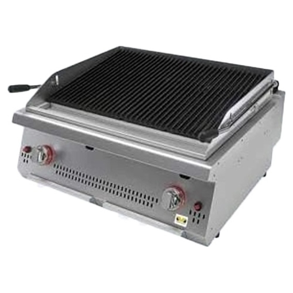 Настольный газовый лавовый гриль Vortmax GGL 78 используется на предприятиях общественного питания и торговли для приготовления широкого ассортимента блюд из мяса, рыбы и овощей методом жарки. Модель оснащена 2 независимыми зонами нагрева, моноблочной решетчатой рабочей поверхностью и расположенной на наклонной фронтальной стенке электромеханической панелью управления. Корпус выполнен из нержавеющей стали, решетка – из чугуна.