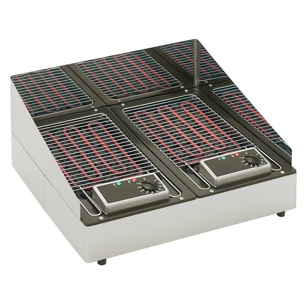 Лавовый гриль Roller Grill 140 D предназначен для приготовления различных блюд на предприятиях общественного питания и торговли. Процесс жарки происходит без применения масла. Вулканическая лава равномерно распределяет жар по продукту; лавовый камень впитывает лишнюю жидкость и исключает появление неприятных запахов в процессе готовки. Модель оснащена съемным блоком управления и эмалированным поддоном. Корпус выполнен из нержавеющей стали, поддон
