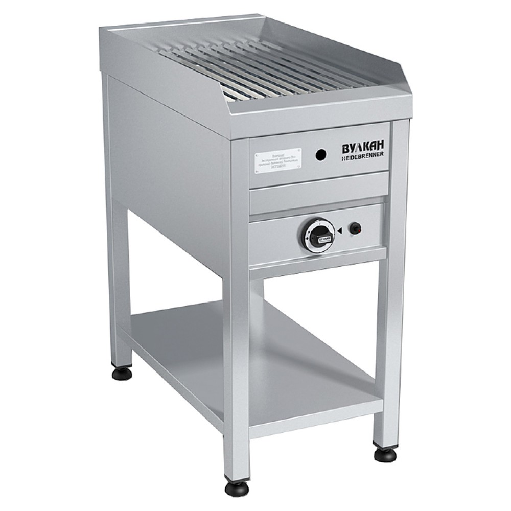 Лавовый гриль Вулкан BPD 01L «Костакан» предназначен для жарки различных продуктов на предприятиях общественного питания и торговли. В процессе приготовления блюда получают такой же вкус, аромат и внешний вид, словно их готовили на открытом огне. Вулканическая лава равномерно распределяет жар по продукту; лавовый камень впитывает лишнюю жидкость и исключает появление неприятных запахов в процессе готовки. Модель оснащена газ-контролем, пьезоподжигом, запальной горелкой и защитным бортом от разбрызгивания. Специальная V-образная решетка задерживает излишки жира, выделяющиеся при жарке.