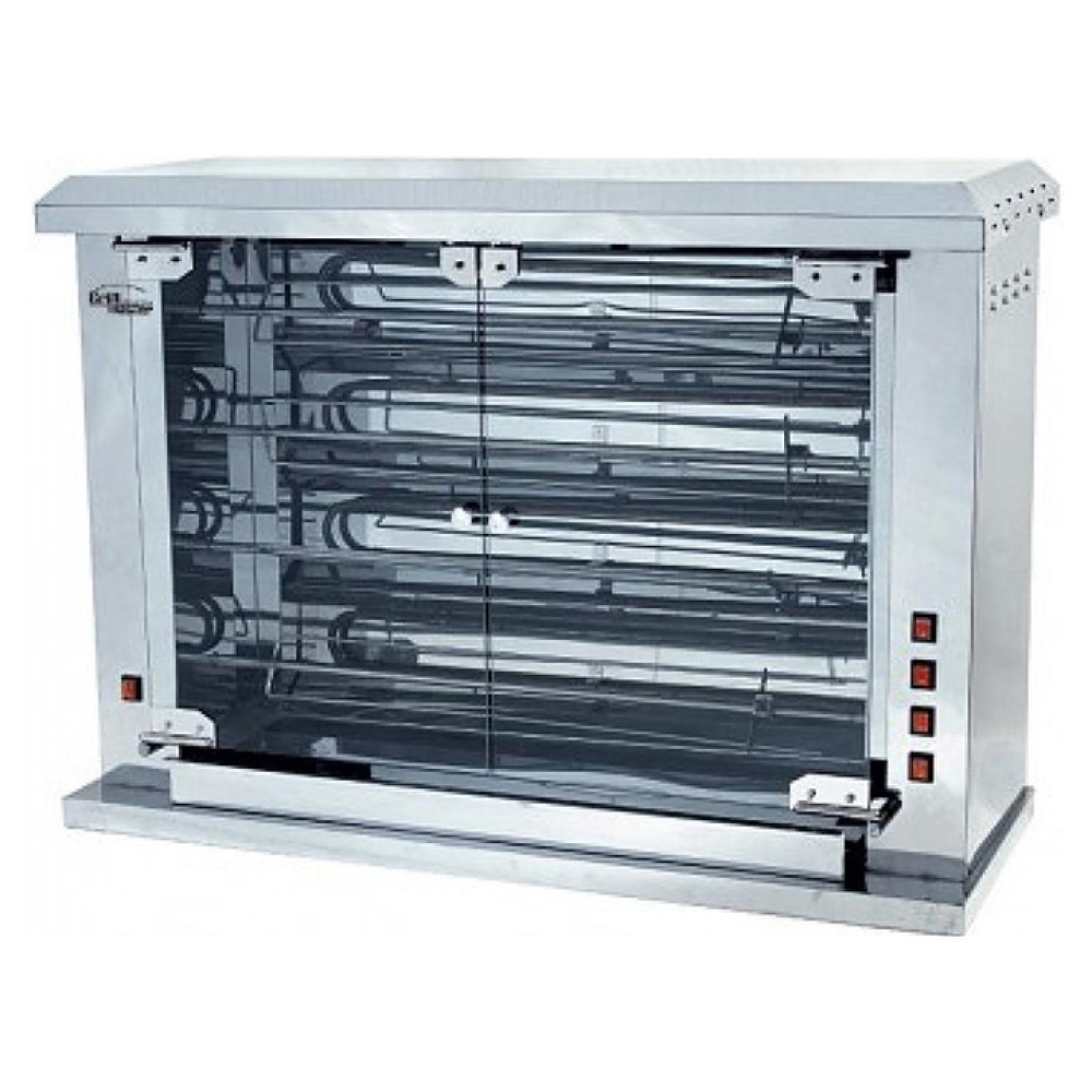 Электрический гриль Grill Master Ф4Ш2Э предназначен для приготовления кур-гриль в заведениях быстрого питания, супермаркетах и уличной торговли. Модель оснащена 2 распашными дверьми и подсветкой камеры. Благодаря непрерывному вращению тушек кур непосредственно возле нагревателей, обеспечивается их равномерное запекание. Изделие выполнено из пищевой нержавеющей стали, дверцы - из термостойкого стекла.