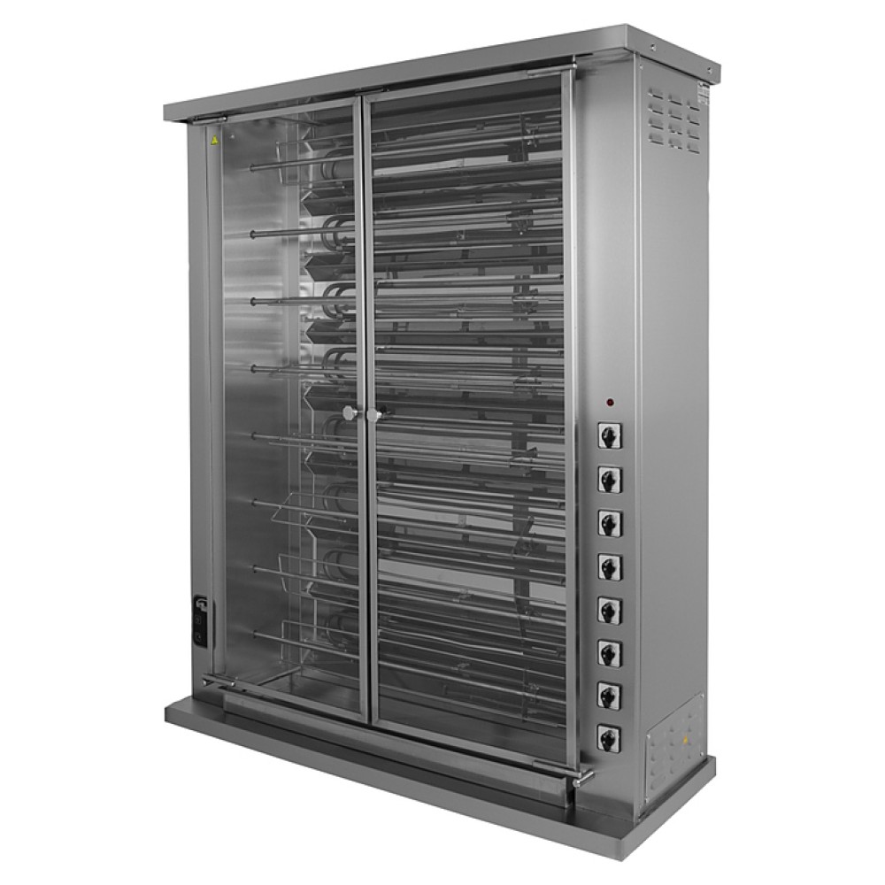 Гриль для кур Grill Master Ф8Ш1Э используется на предприятиях общественного питания и торговли для приготовления тушек кур, куриных окорочков, грудок и других продуктов. Модель оснащена подсветкой. Корпус и шампуры выполнены из нержавеющей стали, дверь - из стекла.