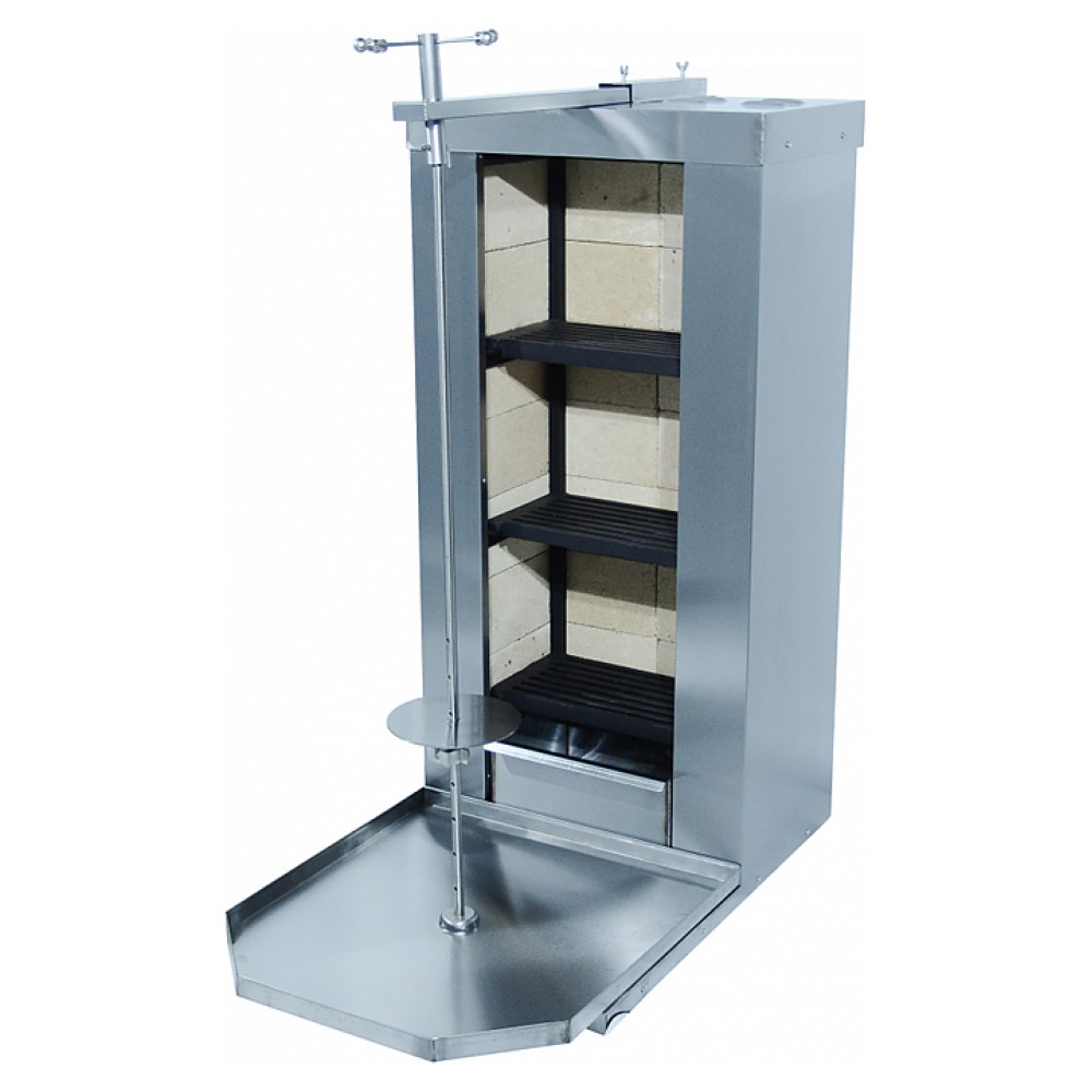 Угольный гриль для шаурмы Grill Master 11315 предназначен для запекания специально подготовленного свиного, говяжьего, бараньего и куриного мяса, используемого для приготовления шаурмы, на предприятиях общественного питания и торговли. Модель оснащена 3 зонами нагрева, подом, сводом, лотком для сбора жира и вертикальным шампуром. Все корпусные элементы выполнены из нержавеющей стали, колосники - из чугуна, боковые стенки отделаны огнеупорным кирпичем.