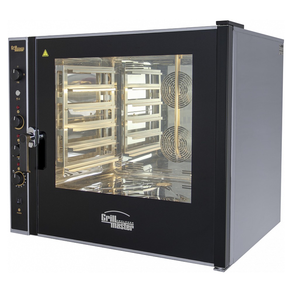 Пароконвектомат Grill Master ПКЭИ/6 предназначен для приготовления различных блюд, выпечки хлебобулочных и кондитерских изделий на предприятиях пищевой промышленности, общественного питания и торговли. Модель оснащена 2 мощными вентиляторами с реверсом и распашной дверью с безопасным плавным открытием. Корпус выполнен из нержавеющей стали, дверь - из двойного термостойкого стекла.