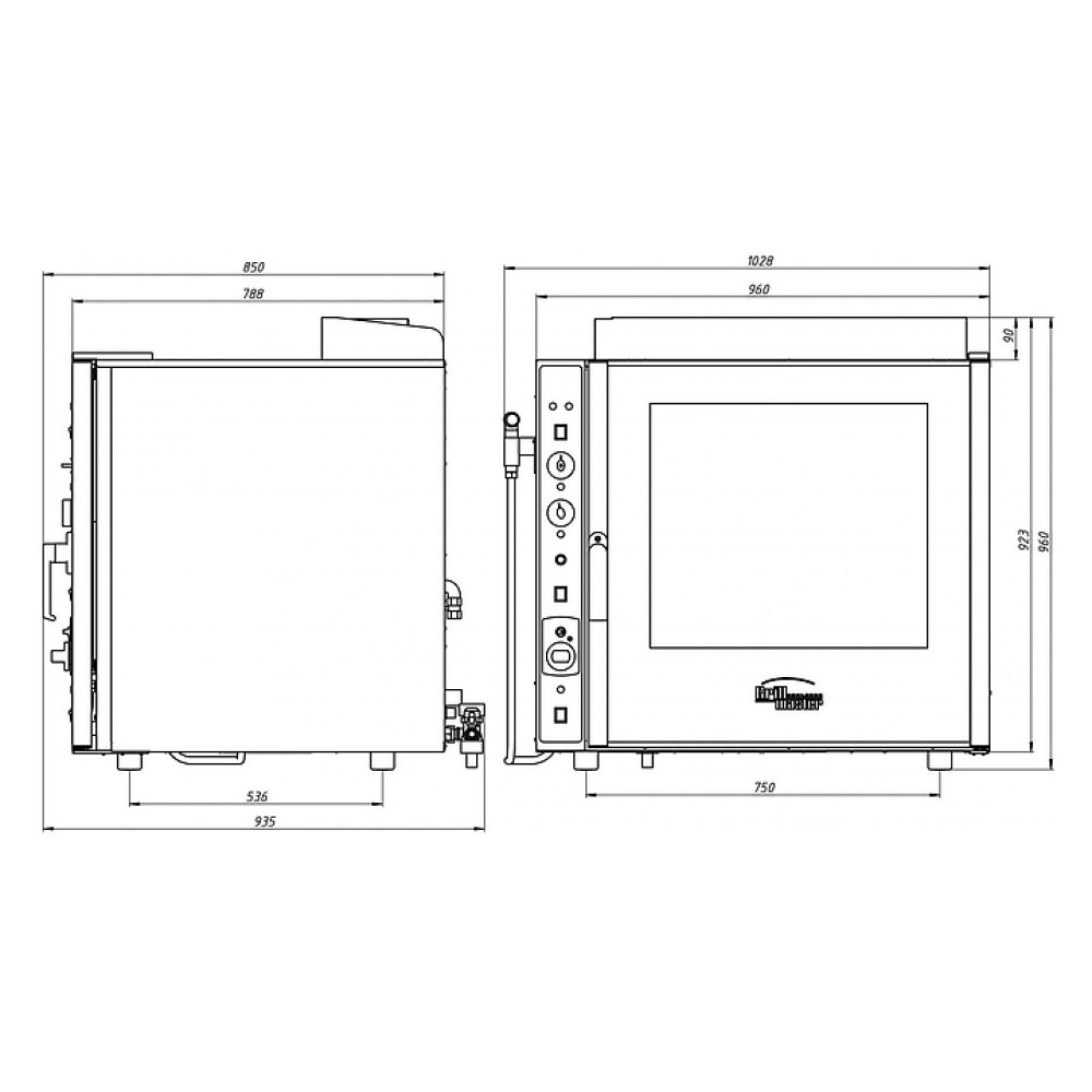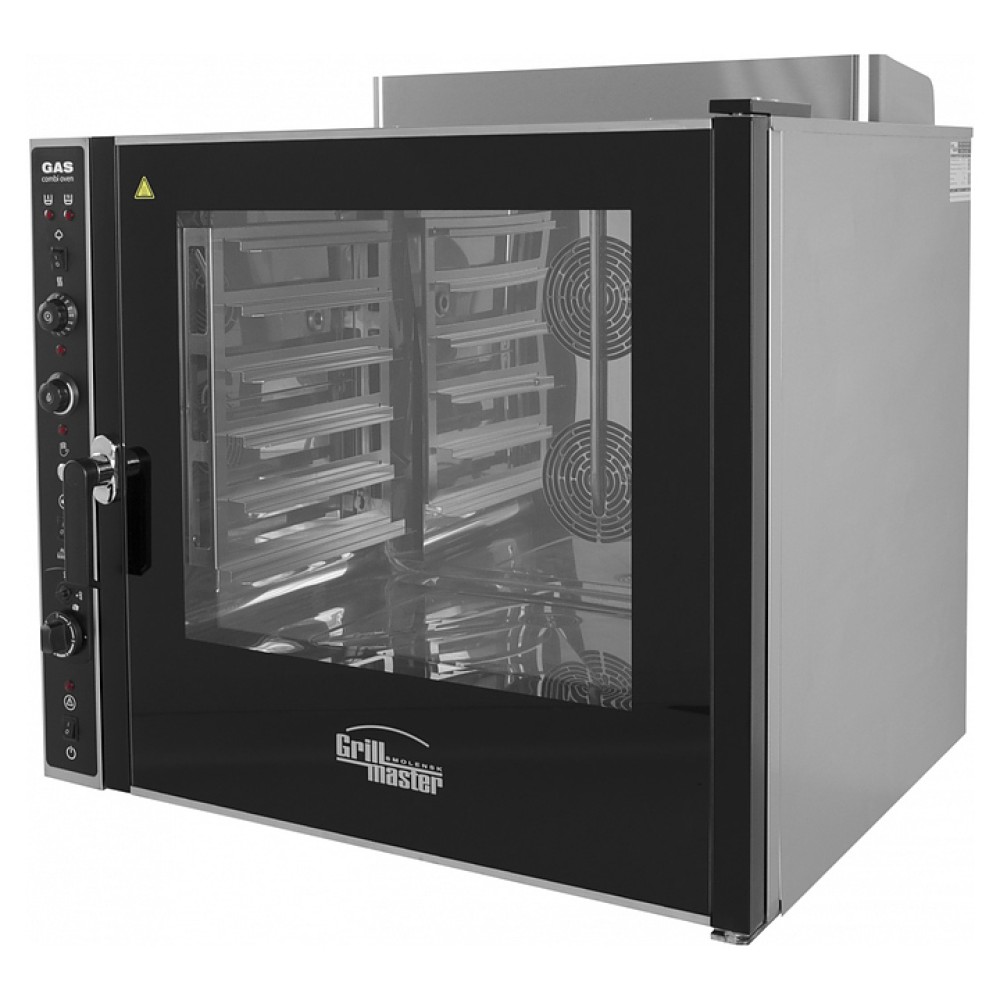 Пароконвектомат Grill Master ПКГ6/Г предназначен для приготовления различных блюд, выпечки хлебобулочных и кондитерских изделий на предприятиях пищевой промышленности, общественного питания и торговли. Модель оснащена дверью с двойным стеклом, электромеханической панелью управления, автоматической и ручной системой регулировки влажности, таймером со звуковой сигнализацией, газ-контролем и душем. Два мощных вентилятора печи снабжены функцией реверсного движения для равномерного приготовления, пароконвектомат работает на природном и сжиженном газе. Изделие выполнено из нержавеющей стали, вставка двери - из закаленного термостойкого стекла.