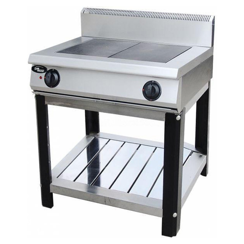 Электрическая плита Grill Master Ф2ПЭ/600 предназначена для приготовления широкого ассортимента блюд в наплитной посуде в кафе, ресторанах и на других предприятиях общественного питания и торговли. Модель оснащена рабочей поверхностью с 2 варочными зонами, открытым стендом, полкой в нижней части и фронтальной электромеханической панелью управления. Изделие выполнено из нержавеющей стали, рабочая поверхность – из чугуна.