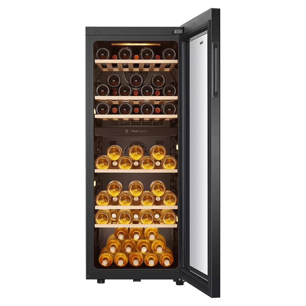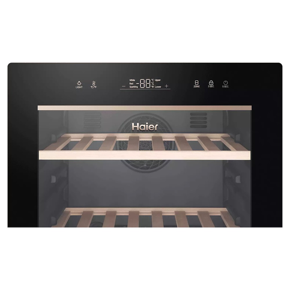 Винный шкаф Haier FWC77GDAE1 предназначен для охлаждения и длительного хранения бутилированного вина в частных домах, квартирах, отелях и офисах. Модель оснащена 2 зонами хранения с независимой установкой температуры и отдельными сенсорными панелями управления для каждой из них и 8 деревянными полками, выполненными из бука.