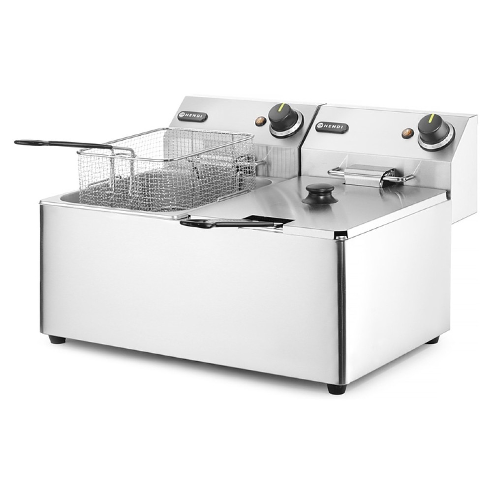 Фритюрница HENDI Kitchen Line 205839 используется на предприятиях общественного питания и торговли для приготовления различных видов продуктов в разогретом масле (фритюре). Модель оснащена индикатором рабочего состояния и термостатом, предохраняющим от пергрева. Корпус и емкость для масла выполнены из нержавеющей стали.