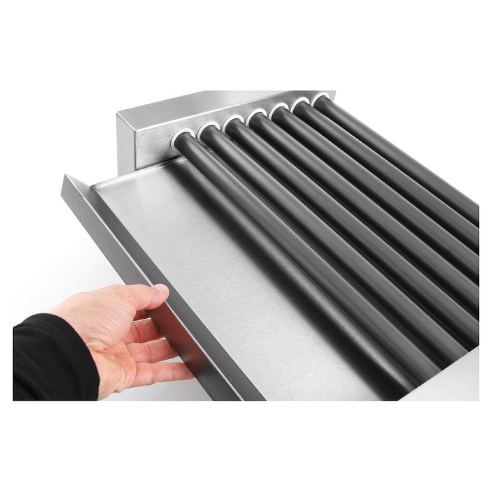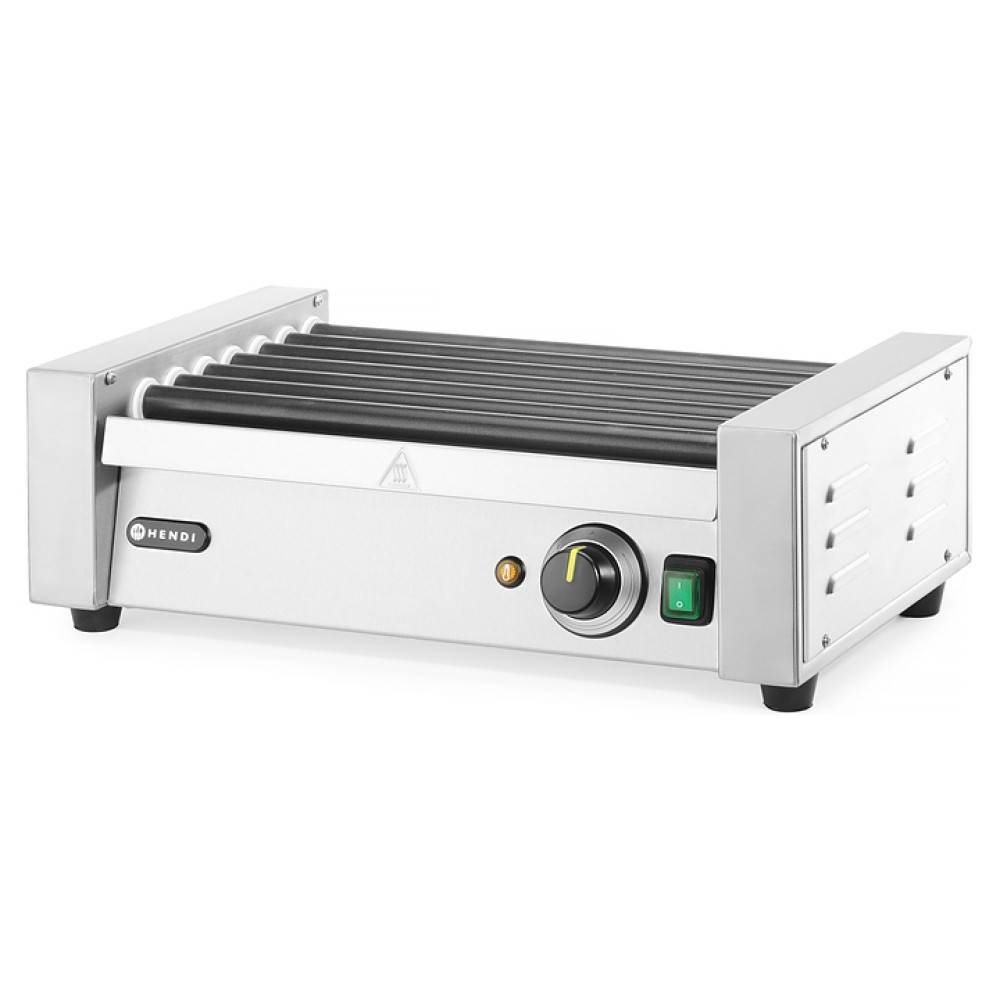 Роликовый гриль HENDI 268506 предназначен для обжаривания мясных и рыбных батончиков, сарделек и сосисок на предприятиях общественного питания и торговли. Модель оснащена роликами с непригорающей поверхностью и съемным поддоном для сбора жира. Постоянное вращение роликов способствует прожариванию продуктов со всех сторон. Корпус выполнен из нержавеющей стали.