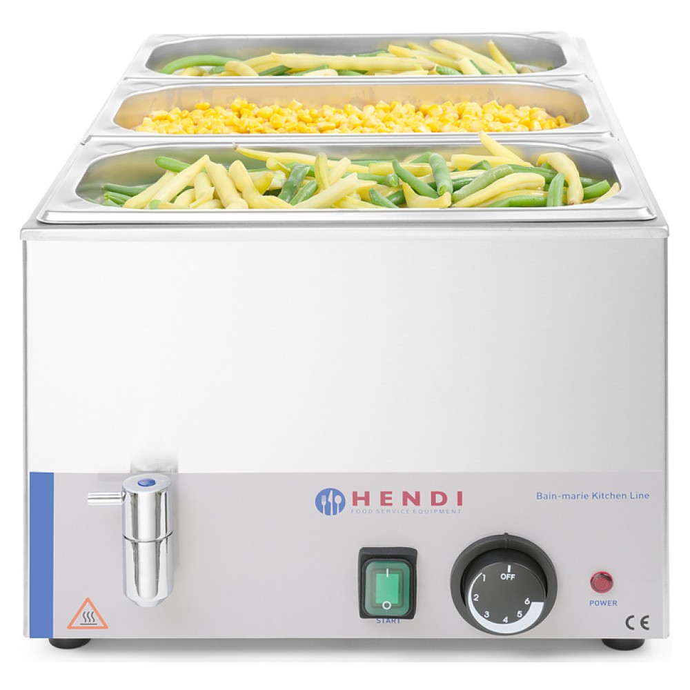 Мармит HENDI Kitchen Line 238905 предназначен для демонстрации и поддержания постоянной температуры готовых блюд на предприятиях общественного питания. Оборудование позволяет избежать остывания и последующего подогрева блюд, негативно сказывающихся на вкусовых качествах. Модель оснащена выключателем, плавным регулятором температуры, термостатом и индикатором. Корпус выполнен из нержавеющей стали с профилированными гладкими внутренними краями для легкой очистки.