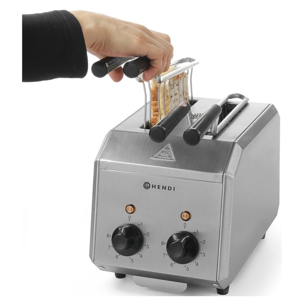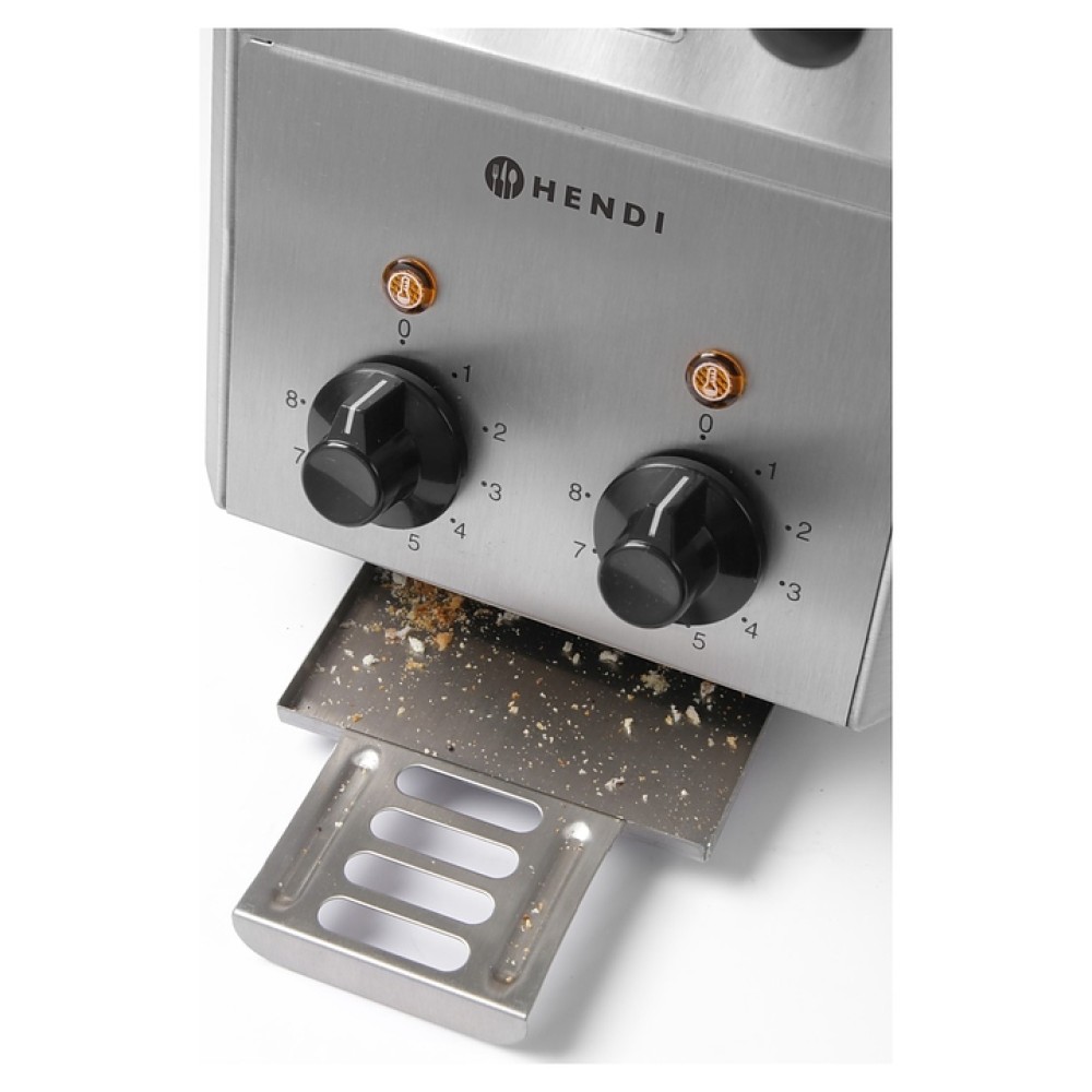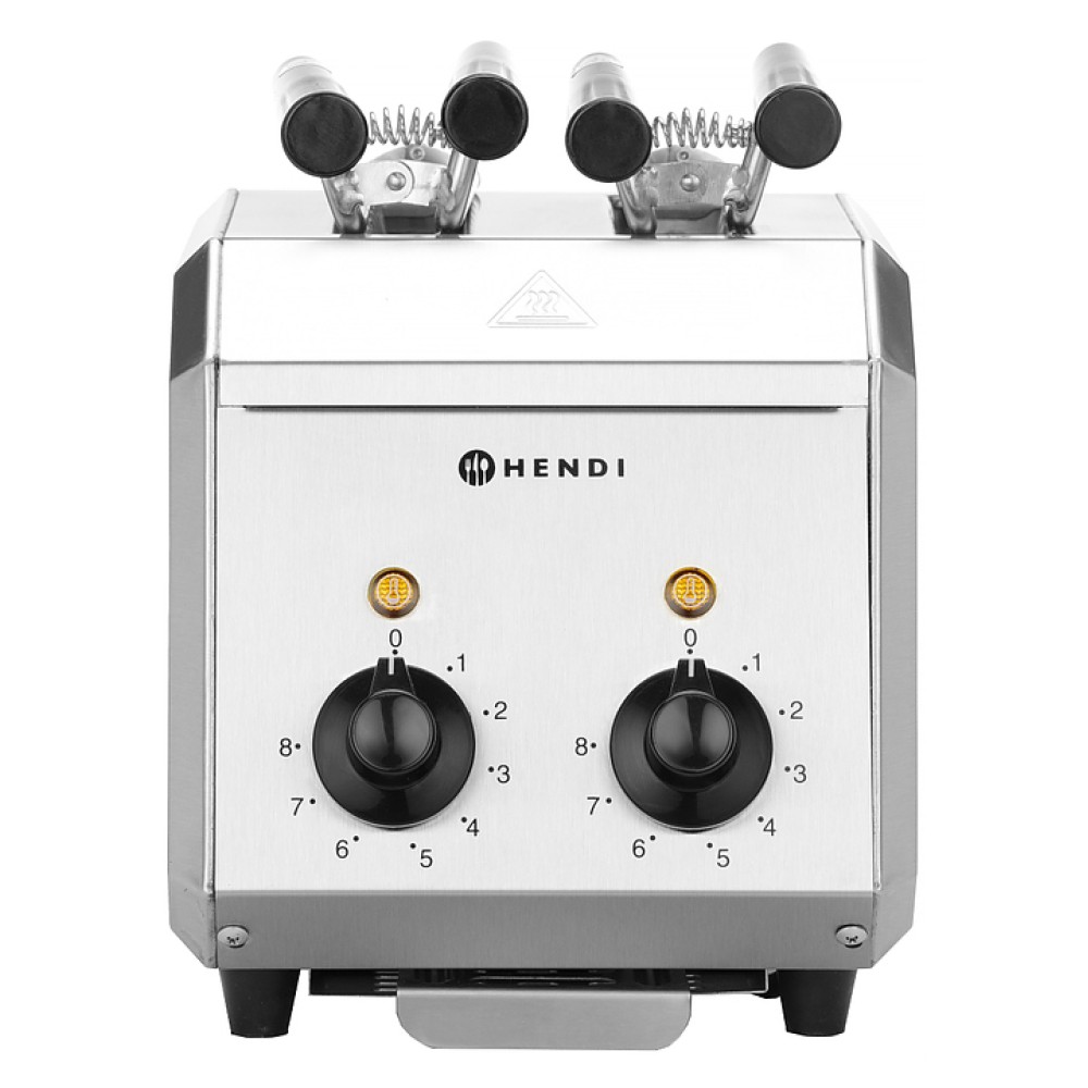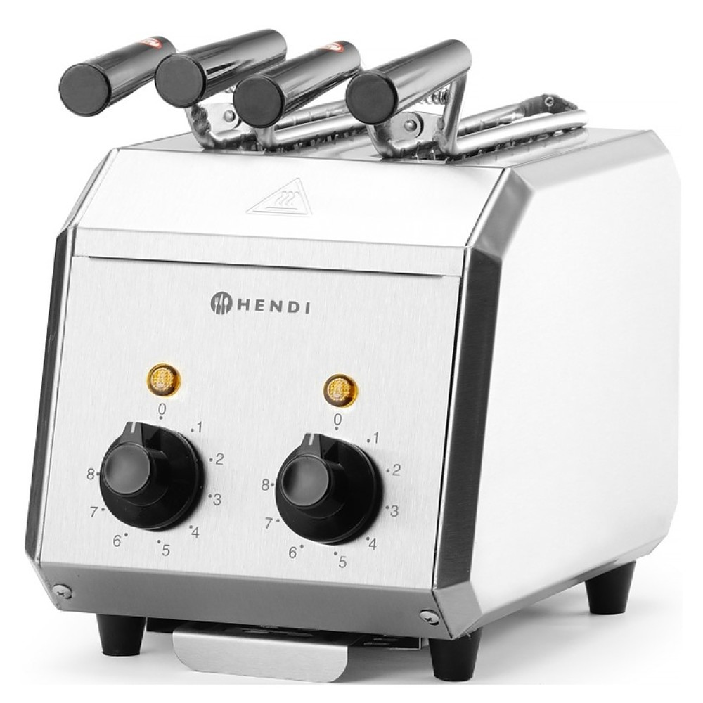 Тостер HENDI 261163 предназначен для поджарки и подогрева кусочков хлеба на предприятиях общественного питания. Модель оснащена 2 зажимами для тостов и выдвижным поддоном для крошек. Корпус выполнен из нержавеющей стали.