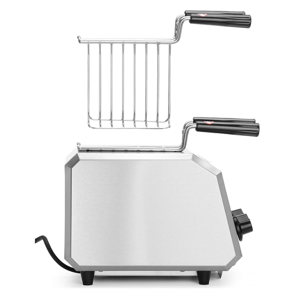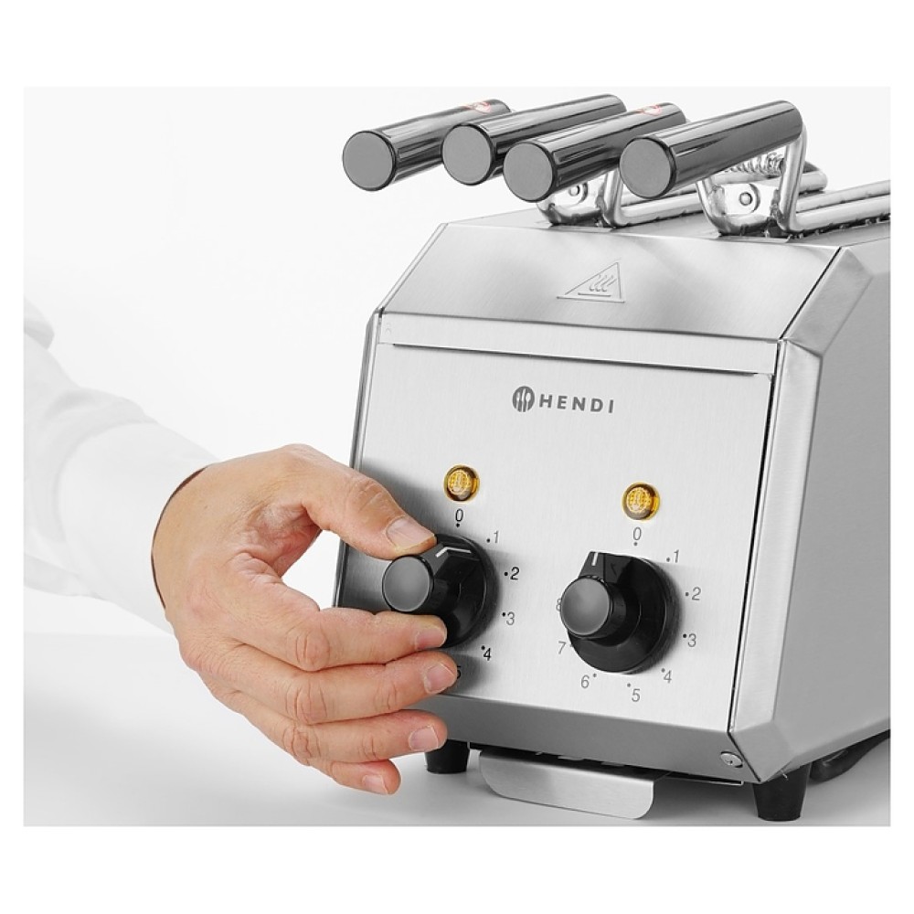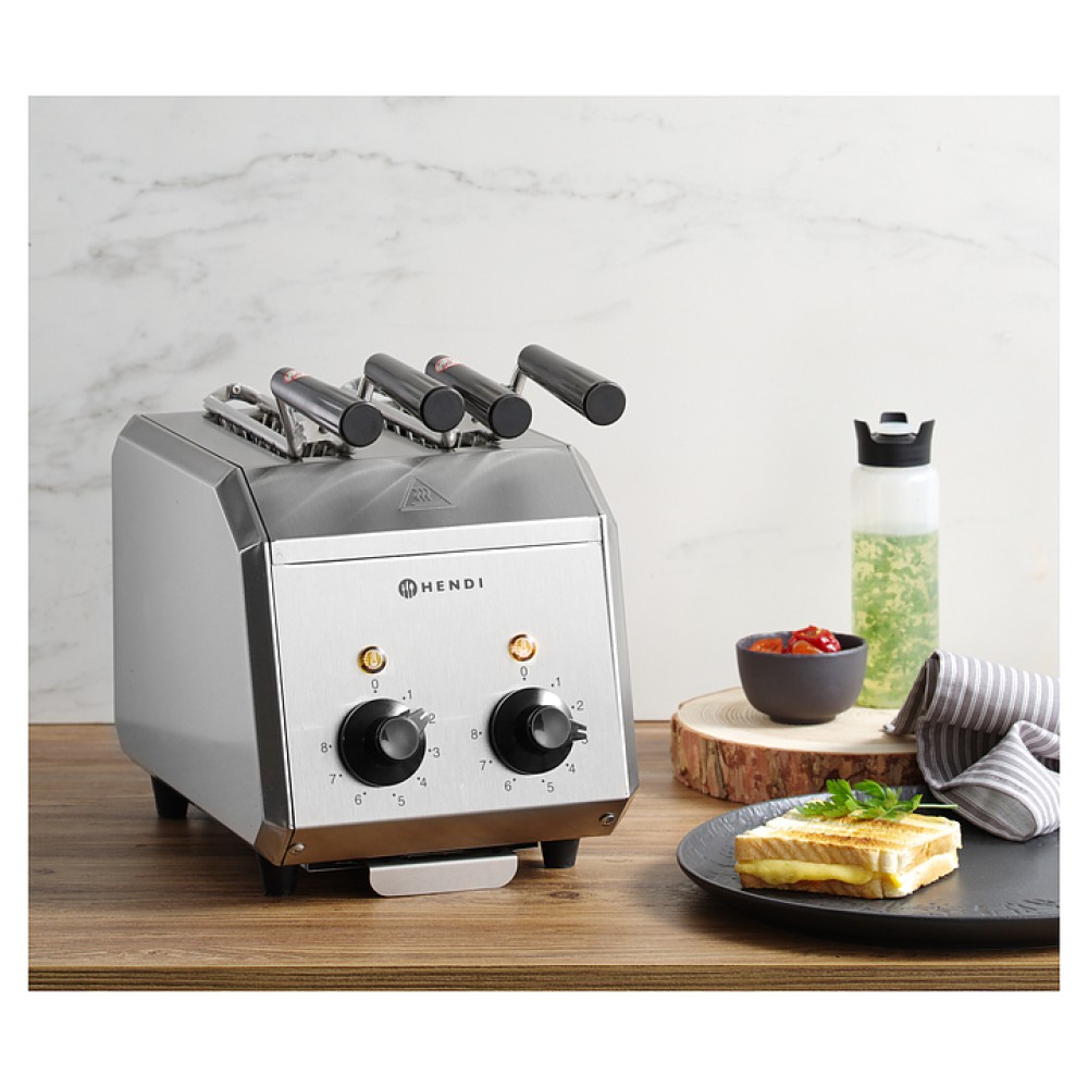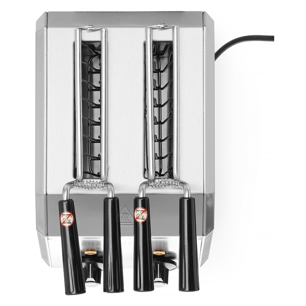 Тостер HENDI 261163 предназначен для поджарки и подогрева кусочков хлеба на предприятиях общественного питания. Модель оснащена 2 зажимами для тостов и выдвижным поддоном для крошек. Корпус выполнен из нержавеющей стали.