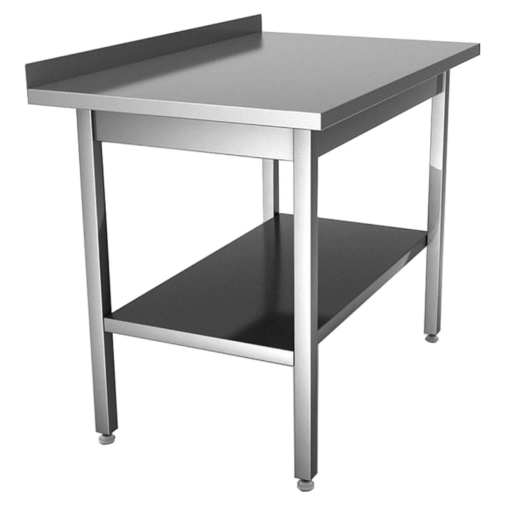 Производственный стол Hessen СРП 9/6 используется на предприятиях пищевой промышленности, общественного питания и торговли как для работы с продуктами питания, так и для хранения на нем посуды и кухонного инвентаря. Стол оснащен сплошной полкой. Изделие произведено с использованием программы Technology without Injuries - комплекса технологических решений, направленных на уменьшение травмоопасности для персонала, работающего на оборудовании. Каркас выполнен из углеродистой стали, покрытой полимерной краской, столешница - из пищевой нержавеющей стали, с укреплением из ламинированного ДСП, каркас усилен квадратной трубой.
