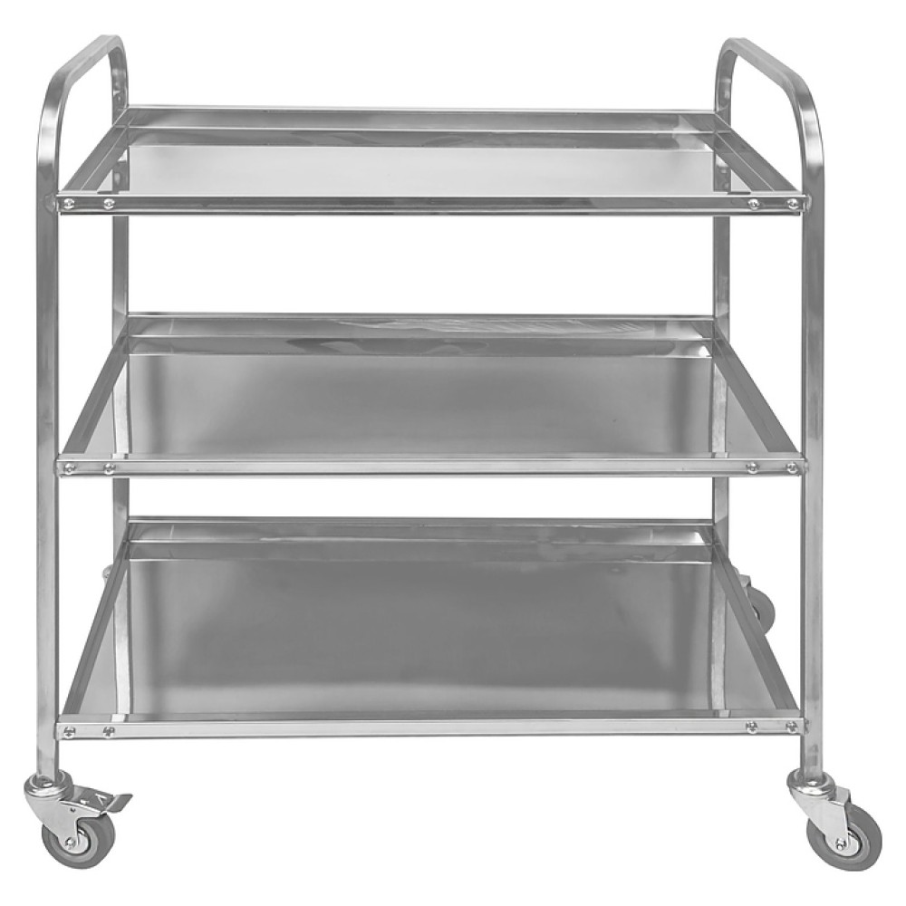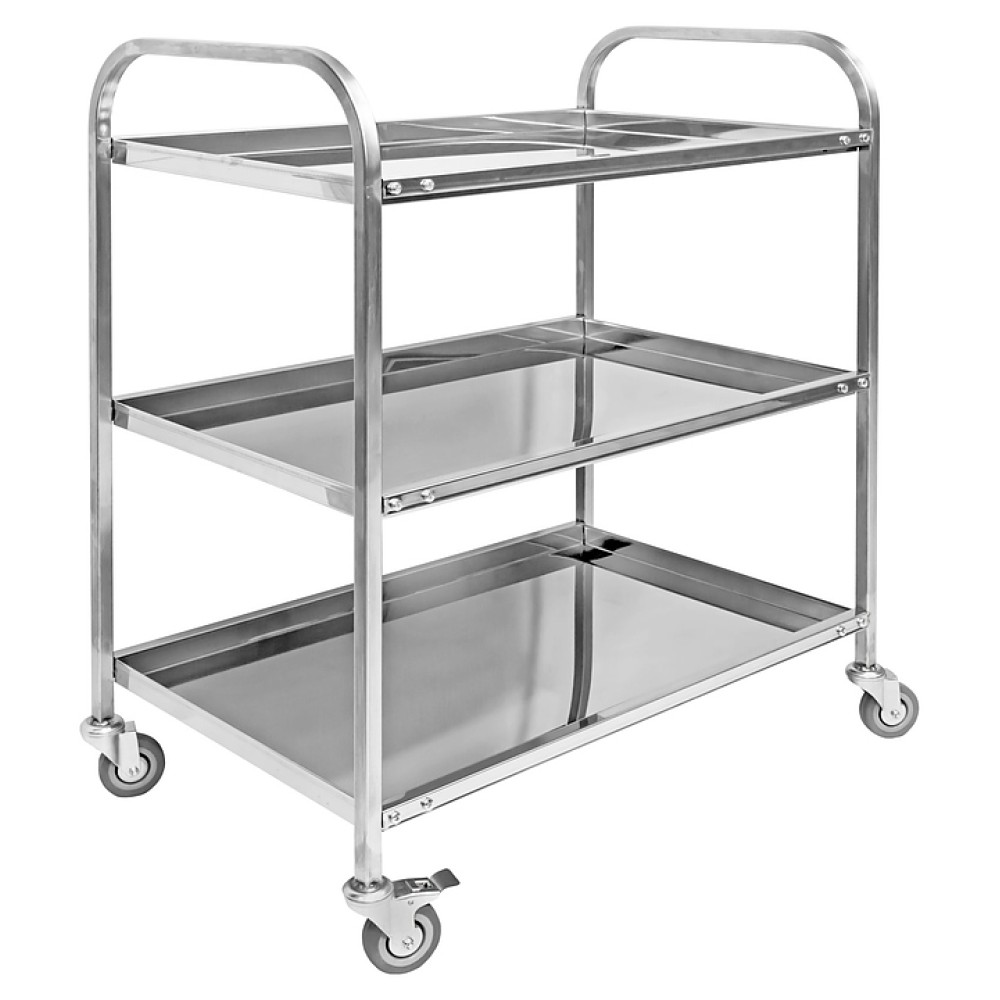 Сервировочная тележка Hessen ТО-3 8/5 используется на предприятиях пищевой промышленности, общественного питания и торговли для сушки, транспортировки тарелок. Модель оснащена 4 колесами, одно из которых с тормозом. Изделие произведено с использованием программы Technology without Injuries - комплекса технологических решений, направленных на уменьшение травмоопасности для персонала, работающего на оборудовании. Опорные дуги выполнены из нержавеющего квадратного профиля 20х20 мм, поддоны - из пищевой нержавеющей стали AISI 430.