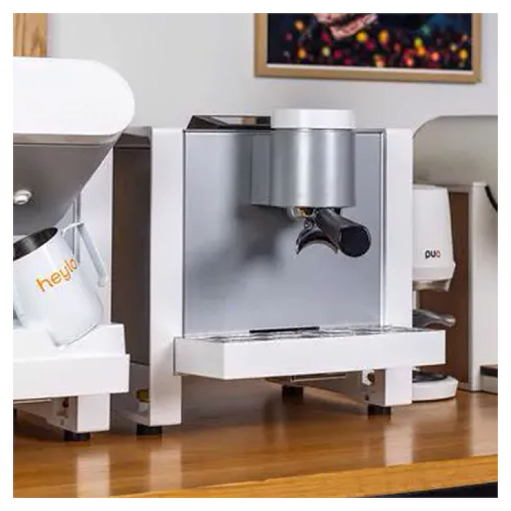 Рожковая безбойлерная кофемашина HHEYLO COFFEE WHITE идеально подходит для кафе, ресторанов и баров при отелях. Модель оснащена дисплеем с большой диагональю 4/3 с разрешением 480 × 272 и откидными полочками для удобства размещения чашек.