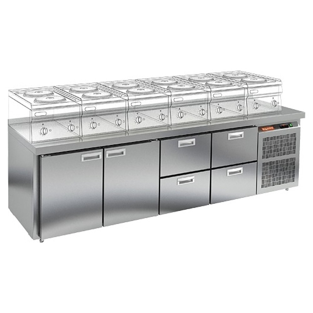 Морозильный стол HICOLD SN 1122 BR2 BT LT предназначен для хранения предварительно замороженных пищевых продуктов, обработки ингредиентов в процессе приготовления блюд, а также размещения теплового оборудования на предприятиях общественного питания и торговли. Модель оснащена встроенным компрессорным холодильным агрегатом с боковым расположением, электронной панелью управления, столешницей c бортом, морозильной камерой с 4 секциями: 2 с распашной дверью в каждой и 2 с 2 выдвижными ящиками в каждой. Корпус и столешница выполнены из нержавеющей стали.