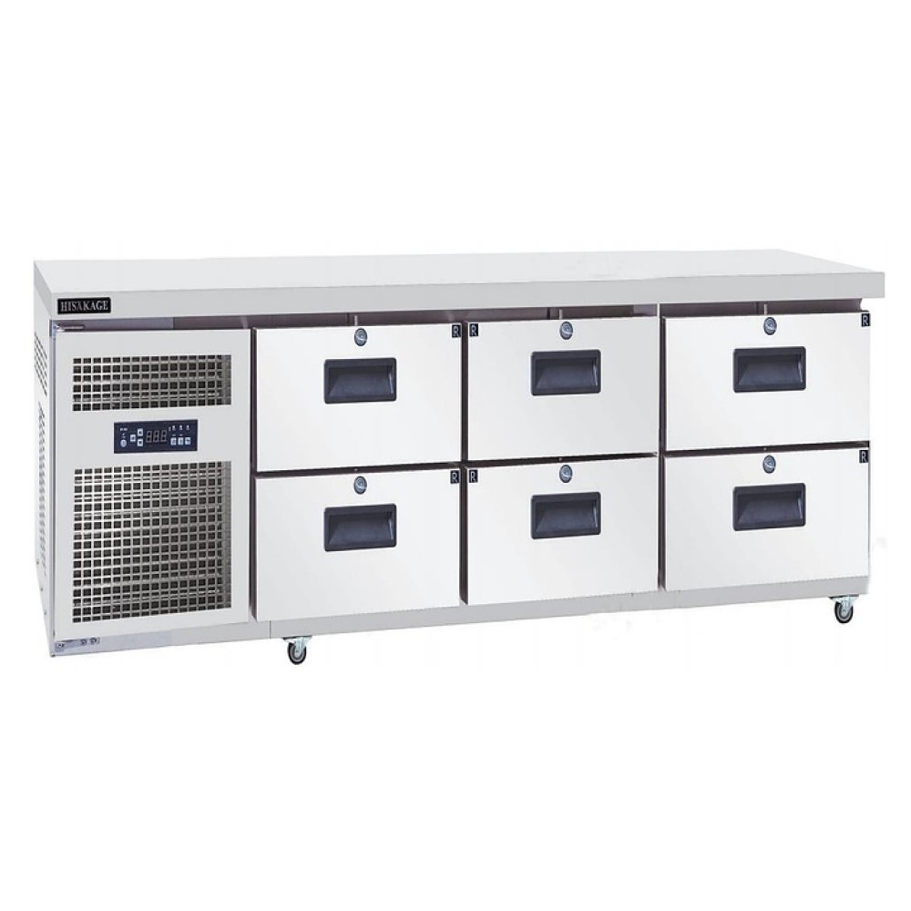 Холодильный стол HISAKAGE CL-180 используется на предприятиях общественного питания и торговли для обработки ингредиентов для приготовления блюд, а также кратковременного хранения скоропортящихся продуктов и напитков. Модель оснащена 6 ящиками. Корпус выполнен из нержавеющей стали AISI 201.