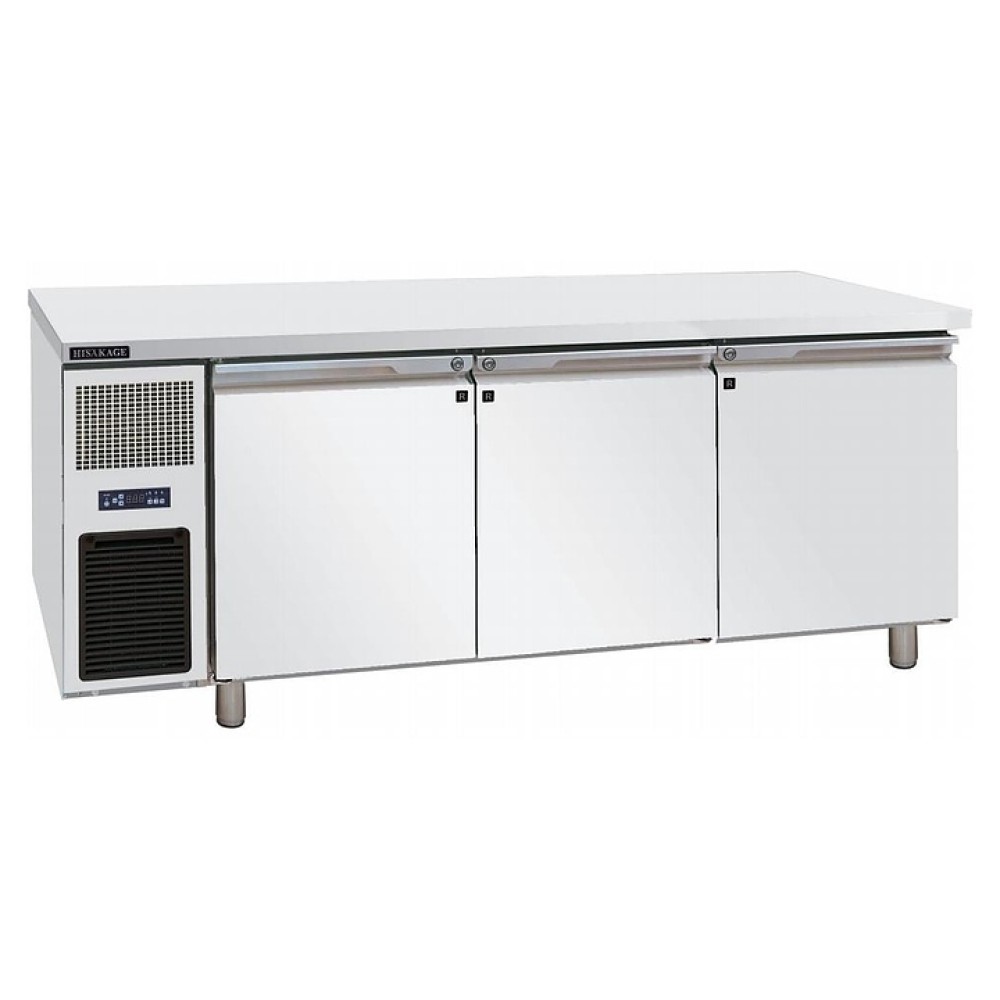 Морозильный стол HISAKAGE LFVP-200 предназначен для раскатки теста и обработки ингредиентов для приготовления блюд, заморозки и хранения продуктов, полуфабрикатов и мороженого на предприятиях общественного питания и торговли. Модель оснащена 3 распашными дверьми и 3 полками. Корпус выполнен из нержавеющей стали AISI 304.