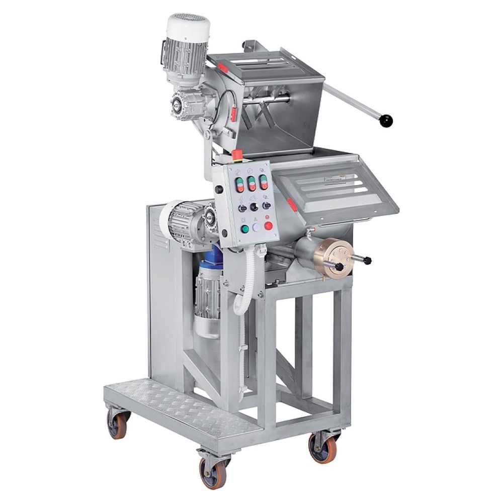 Автоматический экструдер La Monferrina P50 используется на предприятиях пищевой промышленности, общественного питания и торговли для производства коротких и длинных макаронных изделий из любого типа муки и манной крупы, также возможна непрерывная раскатка теста для подачи на формовочные машины. Модель оснащена горизонтальным тестомесом с перфорированной крышкой и электромеханическим блоком управления. Корпус и контактирующие с продуктом компоненты выполнены из нержавеющей стали, фильера (формовочная матрица) – из бронзы.