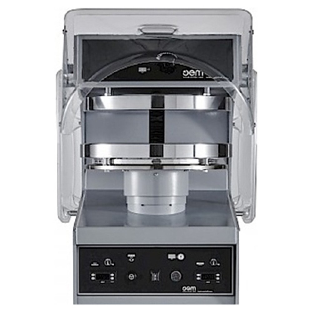 Термический пресс для пиццы OEM-ALI PF45MTE PIANO используется на предприятиях пищевой промышленности, общественного питания и торговли, в пекарнях и кондитерских для получения круглой тестовой основы (краста) для дальнейшего приготовления пиццы и тортильи. Модель оснащена механическим приводом и раздельными электронными термостатами для контроля температуры верхней и нижней пластин.