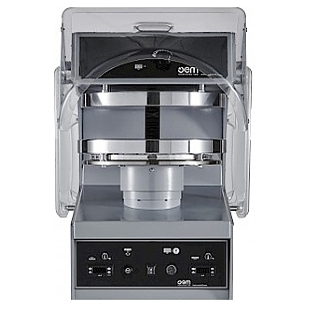 Термический пресс для пиццы OEM-ALI PF45MTE SV.2 используется на предприятиях пищевой промышленности, общественного питания и торговли, в пекарнях и кондитерских для получения круглой тестовой основы (краста) для дальнейшего приготовления пиццы и тортильи. Модель оснащена механическим приводом и раздельными электронными термостатами для контроля температуры верхней и нижней пластин.