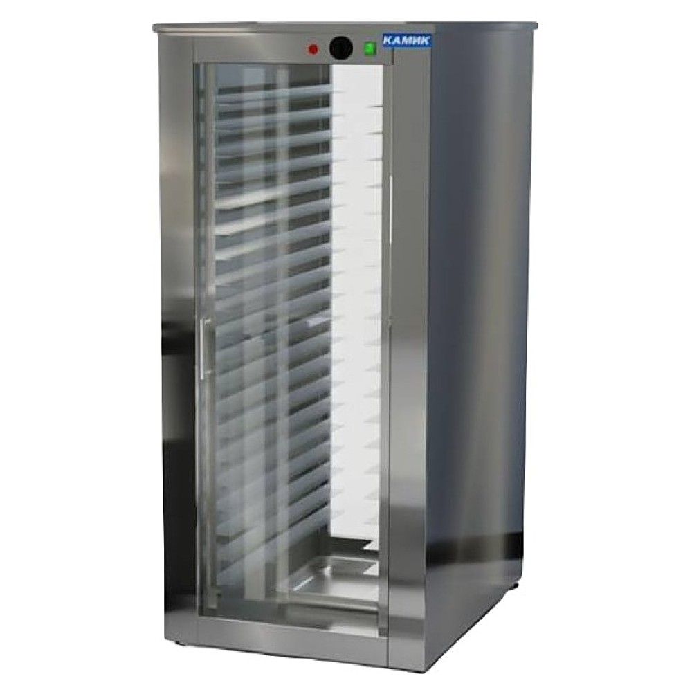 Расстоечный шкаф КАМИК 680х900х1500 мм используется на предприятиях общественного питания и торговли для расстойки теста перед выпеканием кондитерских и хлебобулочных изделий. Модель оснащена поддоном для воды и распашными стеклянными дверьми с двух сторон. Корпус выполнен из нержавеющей стали AISI 430 толщиной 1 мм.