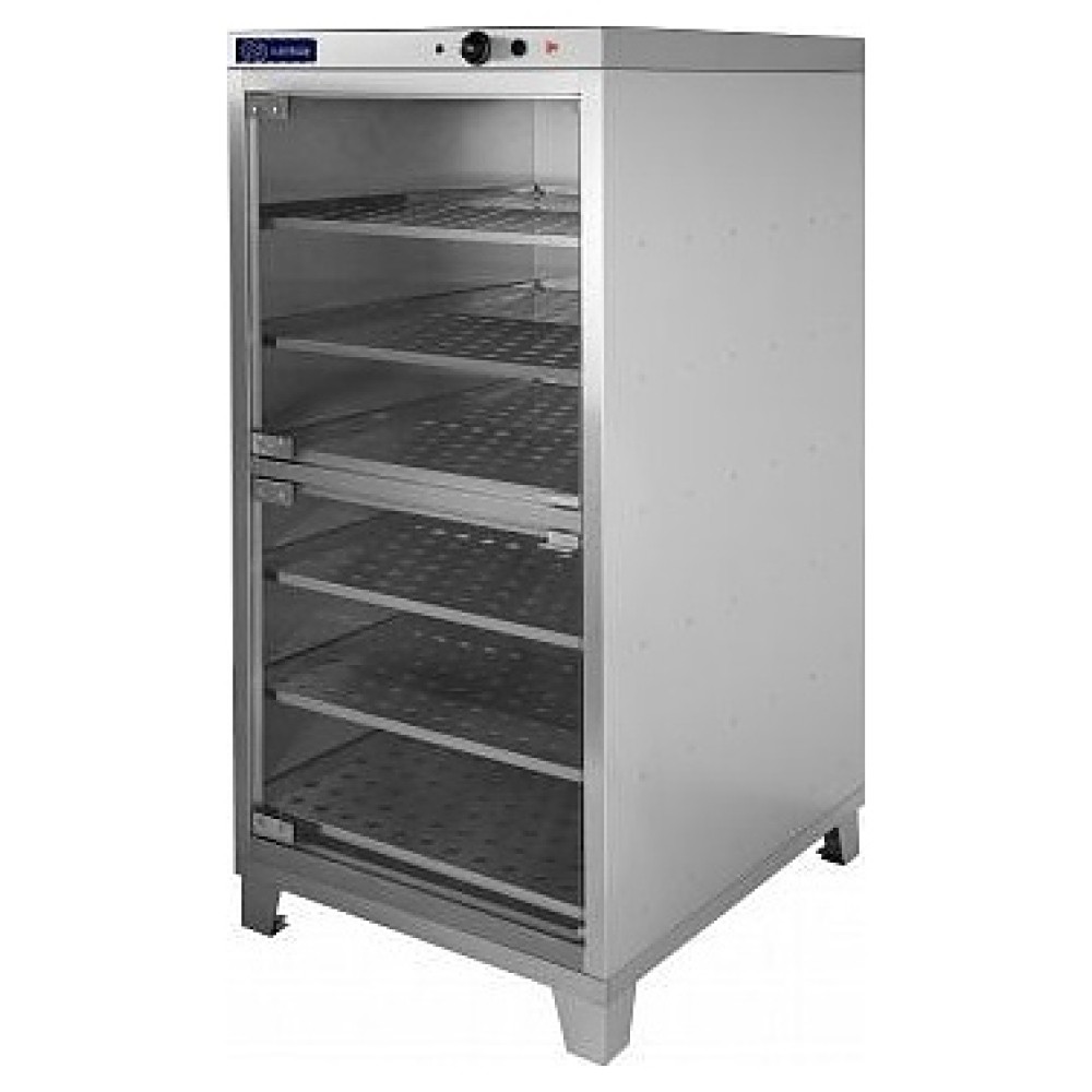 Расстоечный шкаф KAYMAN ШРЭ-6-2 используется на предприятиях пищевой промышленности, общественного питания и торговли для подготовки дрожжевого теста к выпеканию при оптимальных условиях, в процессе расстойки заготовка увеличивается в объеме, приобретает пористую структуру благодаря насыщению углекислым газом, внешняя поверхность становится гладкой и эластичной. Модель оснащена рабочей камерой с 6 уровнями с направляющими и перфорированными полками для противней, 2 распашными дверьми и электромеханической панелью управления. Корпус, направляющие и полки выполнены из нержавеющей стали.