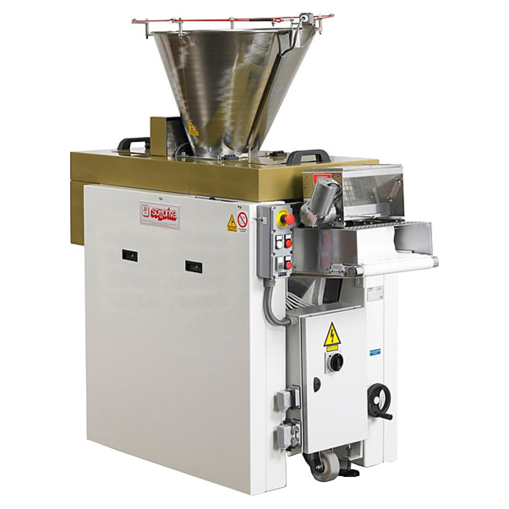 Тестоделитель Sottoriva SVP08/3-R используется на предприятиях пищевой промышленности, общественного питания и торговли для деления тестовых заготовок на порции. Размеры заготовок регулируются по объему вращением маховичка. Модель оснащена отдельным мотором для выходного конвейера, вариатором частоты вращения и встроенным автоматическим распылителем муки. Загрузочный бункер выполнен из нержавеющей стали.