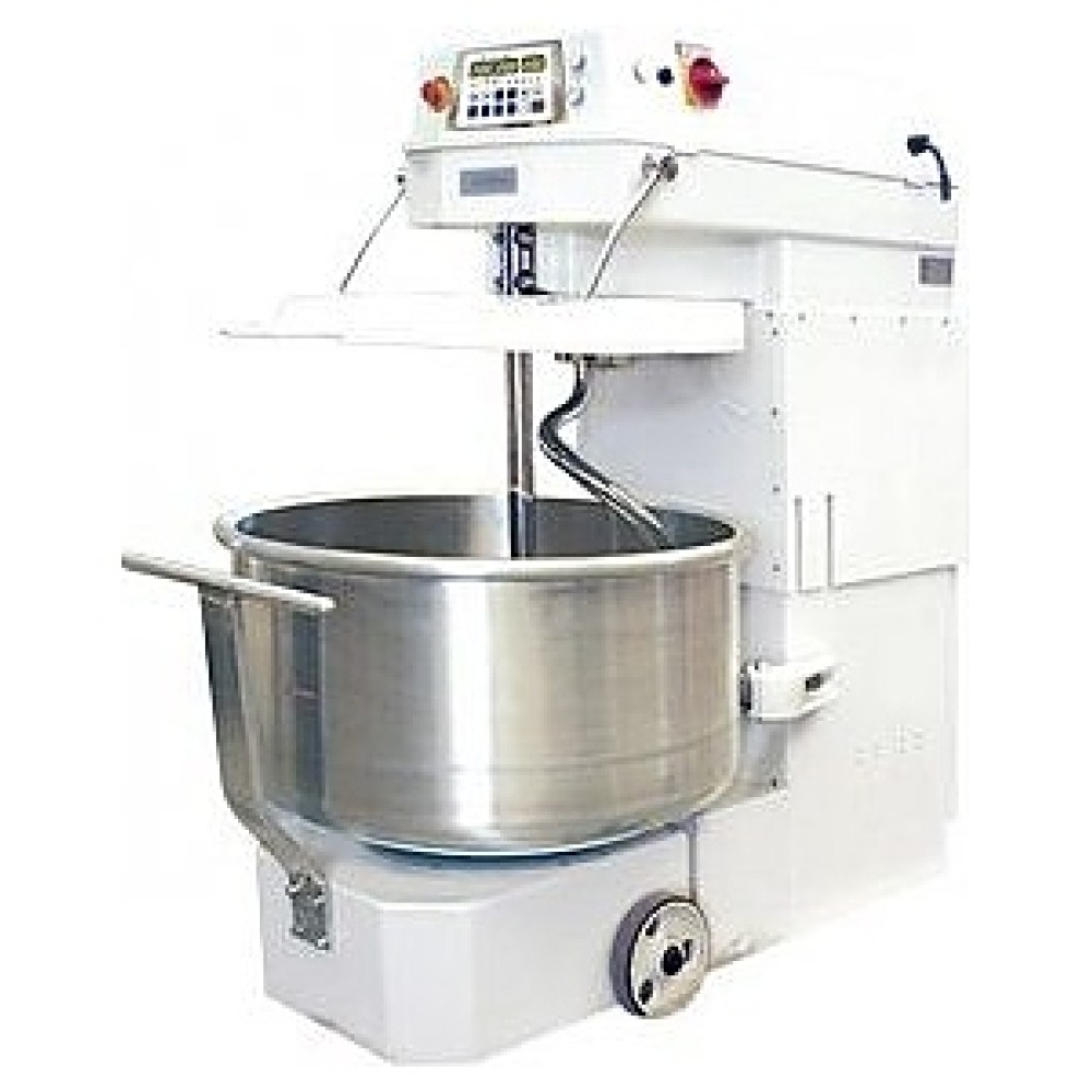 Двухскоростная тестомесильная машина Sinmag SM-120A используется для интенсивного замеса теста (влажностью 39-54%) из пшеничной и ржаной муки. 1-ая скорость аппарата предназначена для перемешивания сырья, 2-ая – для замеса теста. Благодаря этому, а также спиральной форме месильного органа, процесс замеса теста происходит значительно быстрее, чем на других тестомесах.