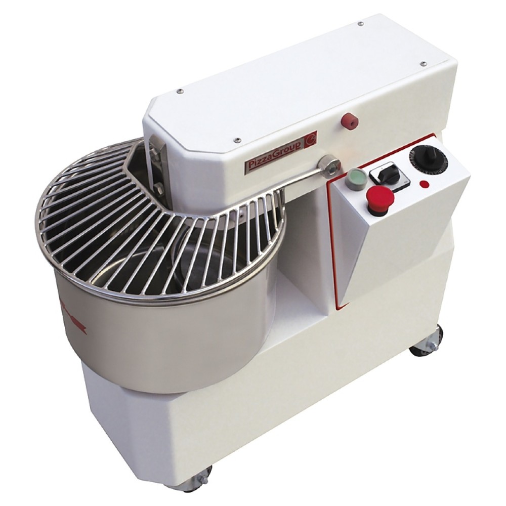 Спиральный тестомес Pizza Group IF22 используется на предприятиях пищевой промышленности, общественного питания и торговли для замеса теста для приготовления пиццы, хлеба и тонких лепешек. Модель оснащена наклонной панелью управления, таймером, защитной решеткой над дежой и колесами. Спираль, решетка, дежа и отсекатель выполнены из высококачественной нержавеющей стали.