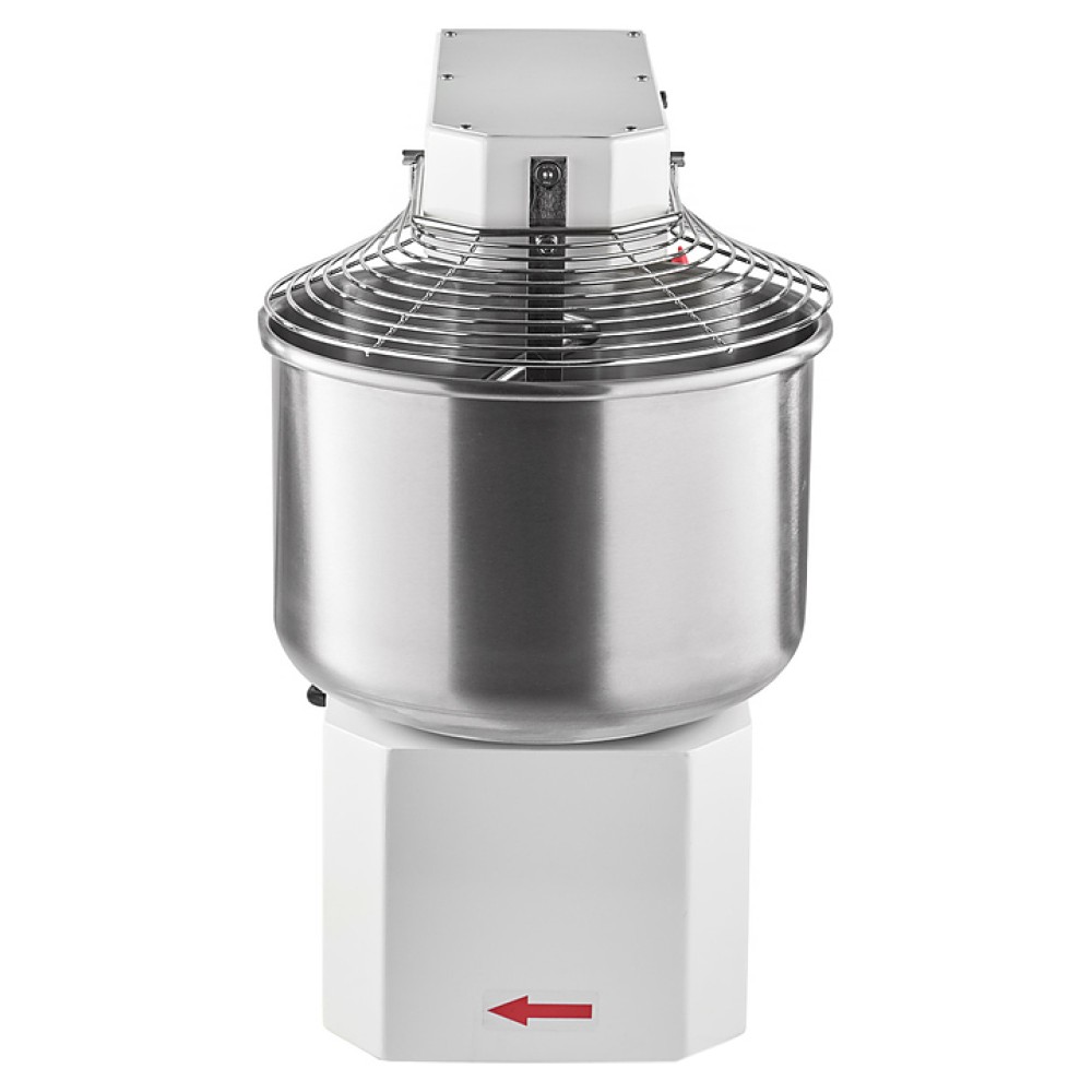 Корпус выполнен из высококачественной конструкционной стали с полимерным покрытием, металлические детали машины, контактирующие с продуктом во время замеса (спираль, дежа, нож) - из нержавеющей стали AISI 304.