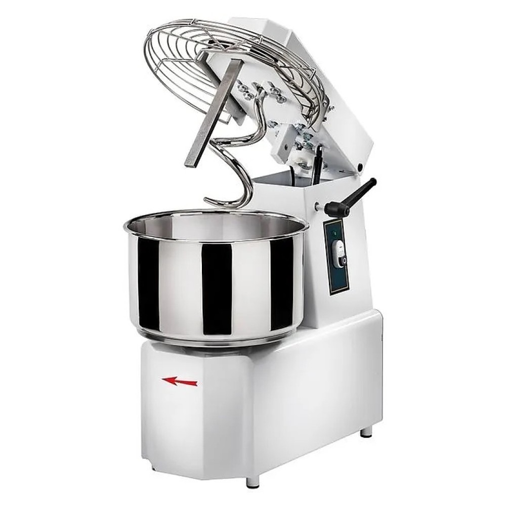 Спиральный тестомес GAM TS-50-2S используется на предприятиях общественного питания, в кондитерских, пекарнях, супер- и гипермаркетах с собственной кухней для замешивания легкого теста для пиццы, хлеба, булочек и пирожков. Модель оснащена фиксированной дежей, подъемной головой и электромеханической панелью управления. Корпус тестомеса выполнен из окрашенной в белый цвет стали, спираль, емкость и отсекатель - из нержавеющей стали AISI 304.