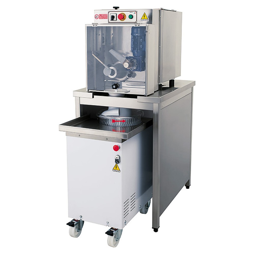 Тестоокруглитель Pizza Group AR300 используется на предприятиях пищевой промышленности, общественного питания и торговли для придания тестовым заготовкам округлой формы. Может применяться совместно с тестоделителем Pizza Group SA300. Тестоделитель устанавливается на опору, внутри которой помещается тестоотделитель, что позволяет формировать технологическую цепочку.