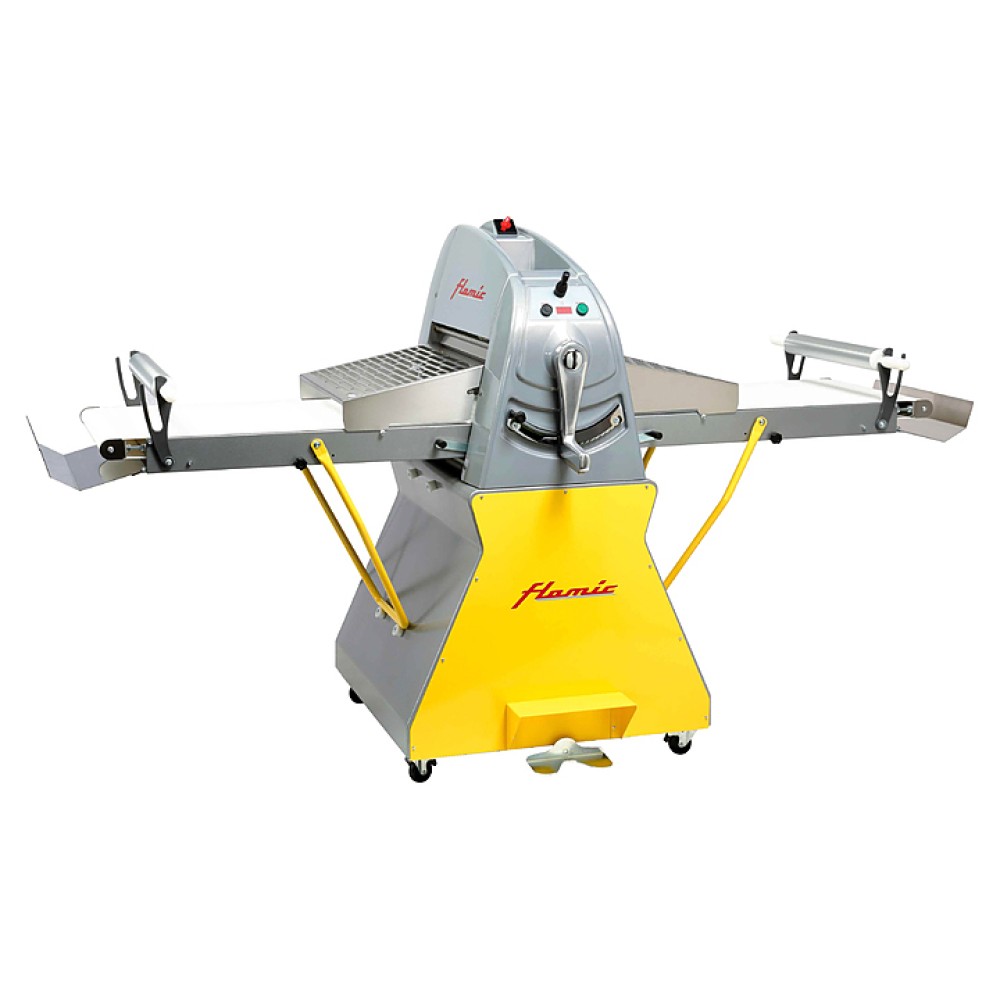 Машина Flamic SF500D-1200 предназначена для раскатки бездрожжевого и дрожжевого слоеного теста, а также теста для приготовления пельменей, лапши и др. на предприятиях пищевой промышленности и общественного питания, в пекарнях и кондитерских. Модель оснащена электромеханической панелью управления с дисплеем, на котором отображается толщина раскатки. Конструкция выполнена из окрашенной стали.
