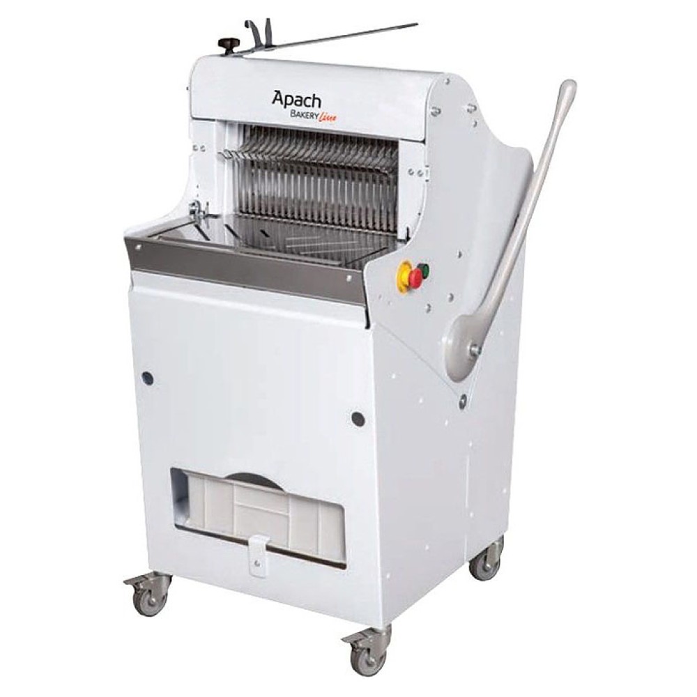 Напольная ручная хлеборезка Apach Bakery Line C52S используется на предприятиях с небольшими и средними объемами производства для нарезки хлеба с более плотным мякишем или с коркой средней твёрдости. Модель отличается боковой загрузкой и колесами для удобства перемещения. Корпус выполнен из окрашенной стали.