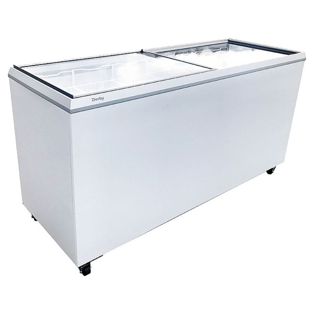 Морозильный ларь Derby EK-66 предназначен для демонстрации, заморозки и длительного хранения продуктов и полуфабрикатов на предприятиях общественного питания и торговли. Модель оснащена прямой стеклянной крышкой, регулируемым термостатом и аналоговым контролем температуры. Корпус выполнен из окрашенной стали, внутренняя прокладка и испаритель - из алюминия, рама - из усиленного пластика.