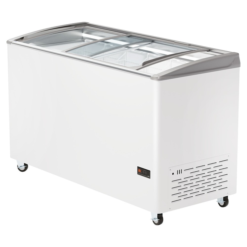 Морозильный ларь Haier SD-516AELUA предназначен для демонстрации, заморозки и длительного хранения продуктов и полуфабрикатов на предприятиях общественного питания и торговли. Модель оснащена электронным контроллером с сенсорным дисплеем, 2 раздвижными дверями с изогнутым закаленным теплоотражающим стеклом со специальным покрытием и 4 усиленными прорезиненными колесами, 2 из которых поворотные. Испаритель и конденсатор выполнены из оцинкованной стали, верхняя рамка - из формованного ABS пластика.