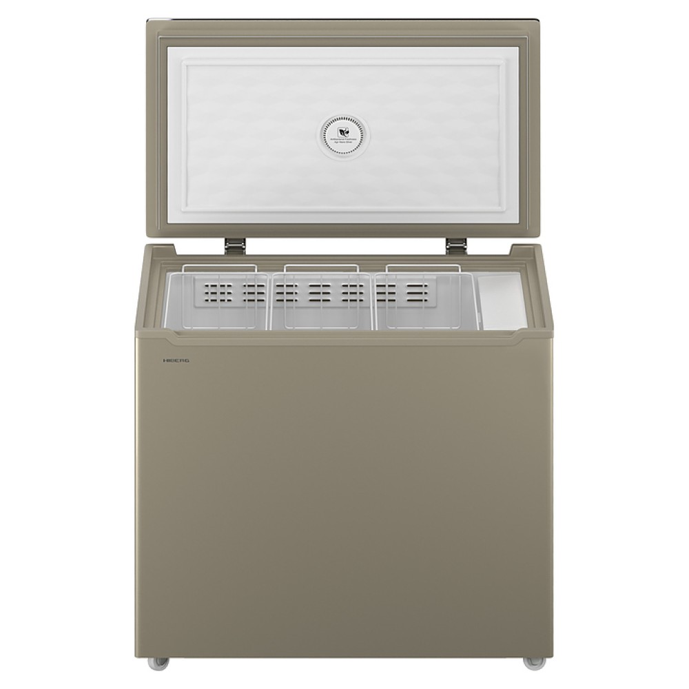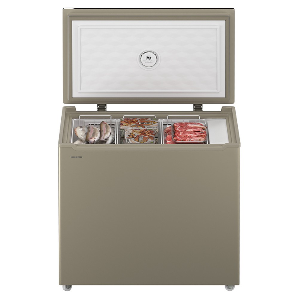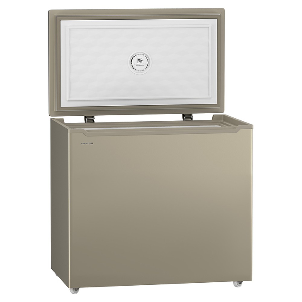 Морозильный ларь Hiberg PF 25 NFG предназначен для охлаждения, заморозки, кратковременного и длительного хранения пищевых продуктов и напитков в гостиничных комплексах, офисах и домашних условиях. Модель оснащена горизонтально ориентированной рабочей камерой с откидной дверью сверху, кабелем питания с вилкой, расположенной на внешней стороне двери электронной панелью управления с функциональными клавишами, светодиодными индикаторами и цифровым дисплеем. Корпус выполнен из металла с антикоррозийным покрытием золотистого оттенка, поверхность крышки – из прочного закаленного стекла, внутренняя облицовка камеры – из белого пластика, корзины – из металла с белым антикоррозийным покрытием.
